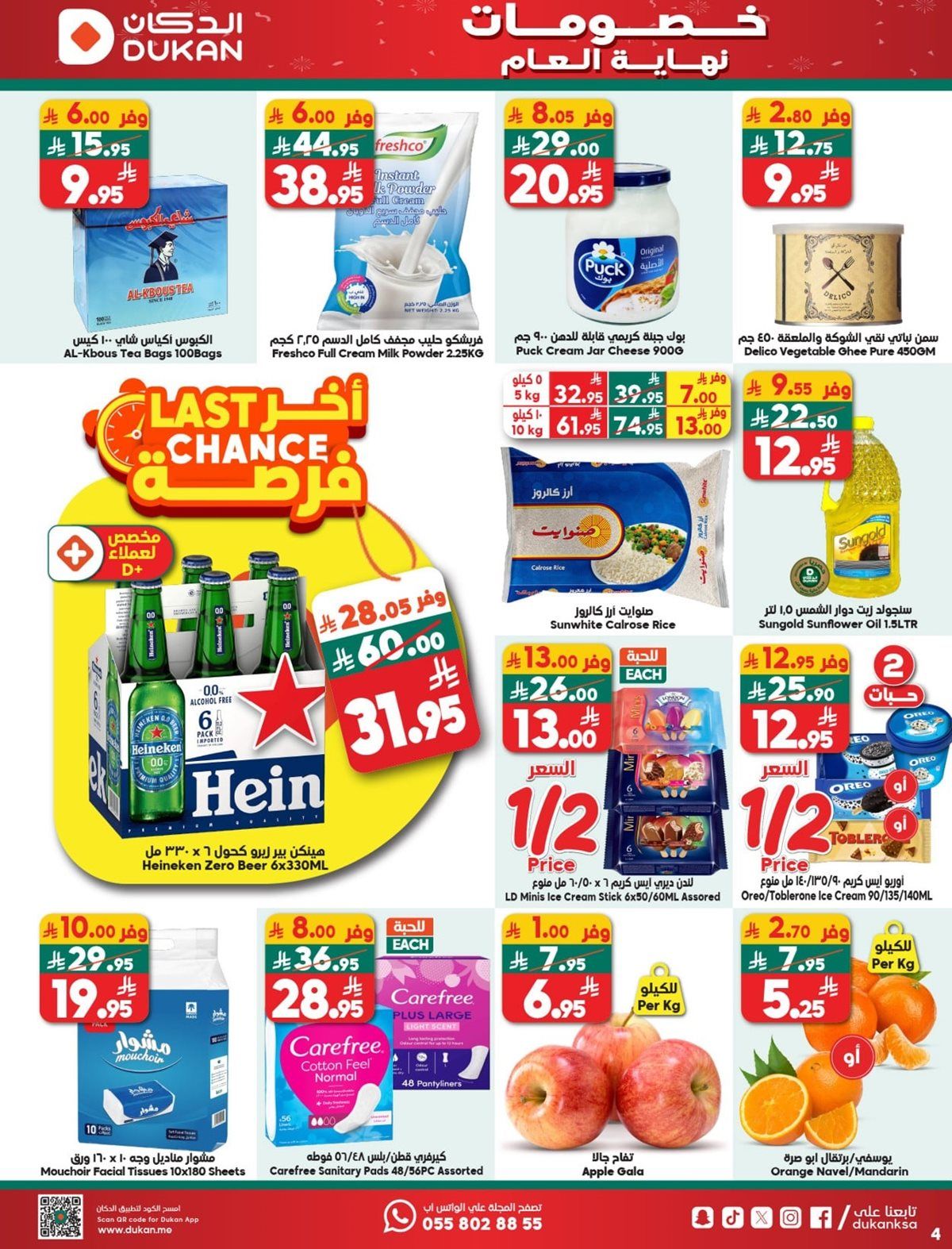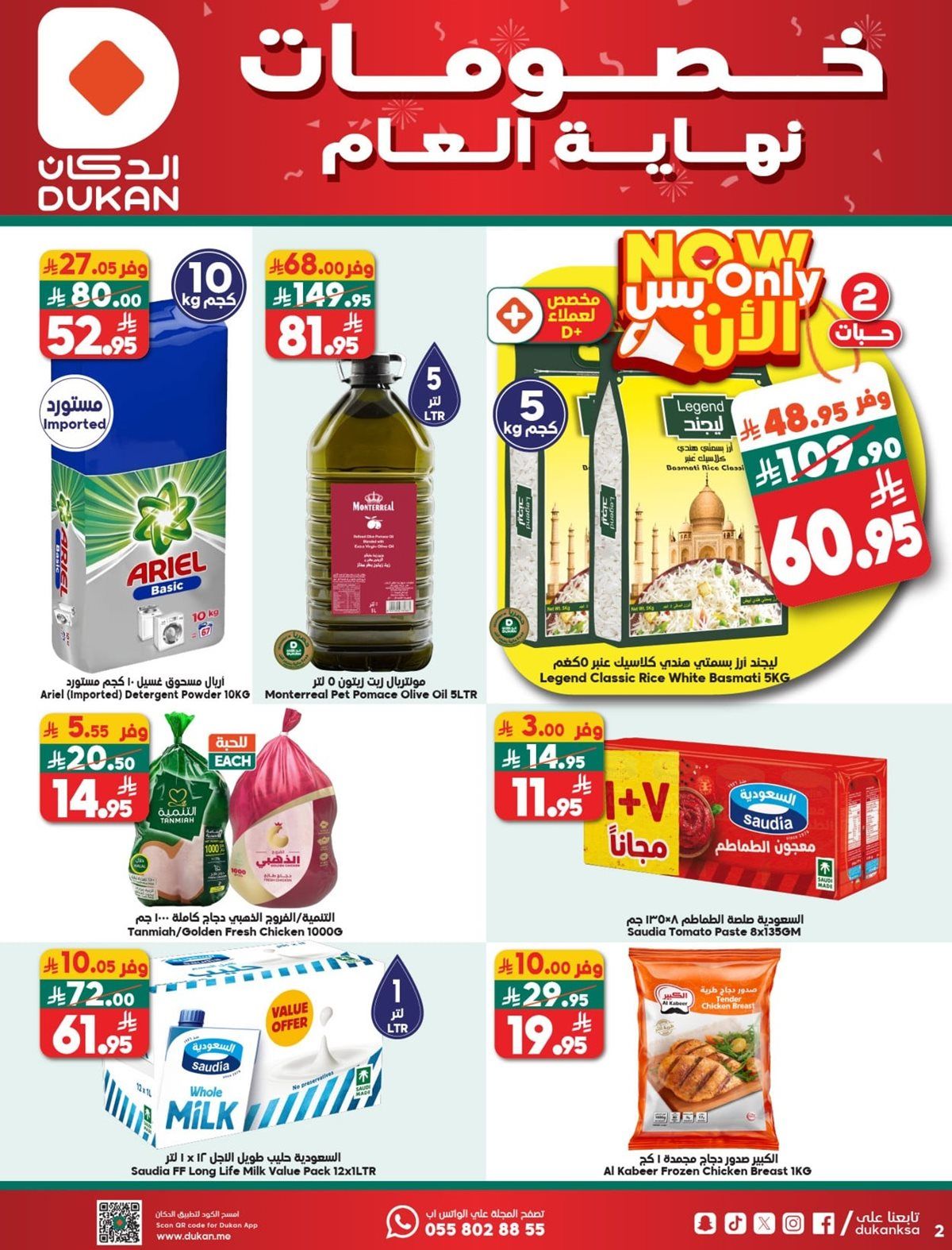 عروض الدكان جدة الأسبوعية الخميس 5 رجب 1447هـ تشمل الفول الأخضر والبصل والكرفس واليوسفي البلدي والتفاح والتمر وزيت السمسم والطحينة ثم تمتد إلى الأجهزة مثل قدر ستانلس ومفرمة ثوم وسخان شوربة وصينية تحميص و تشكيلة من اللحوم و المعلبات باقل الاسعار المناسبة للجميع .