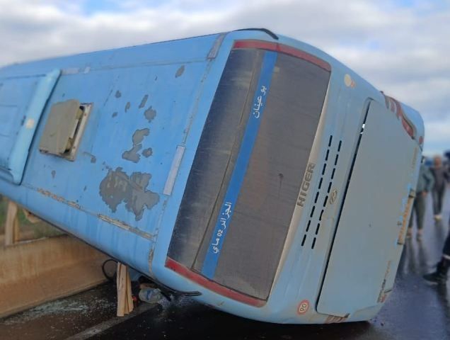 تدخلت مصالح الحماية المدنية، اليوم الخميس، على الساعة 08سا44د لأجل حادث انحراف حافلة لنقل المسافرين. بالطريق الولائي 114 الرابط بين بابا علي و تباينت - على مستوى جسر برمضان، بلدية الشبلي، دائرة بوعينان ولاية البليدة.