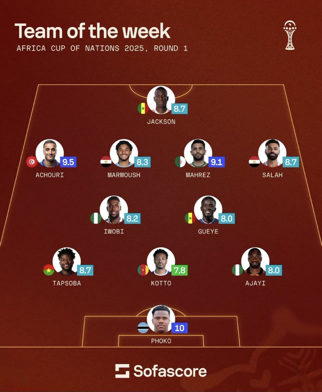 وتالياً القائمة الأفضل في الجولة الأولى للبطولة القارة السمراء: