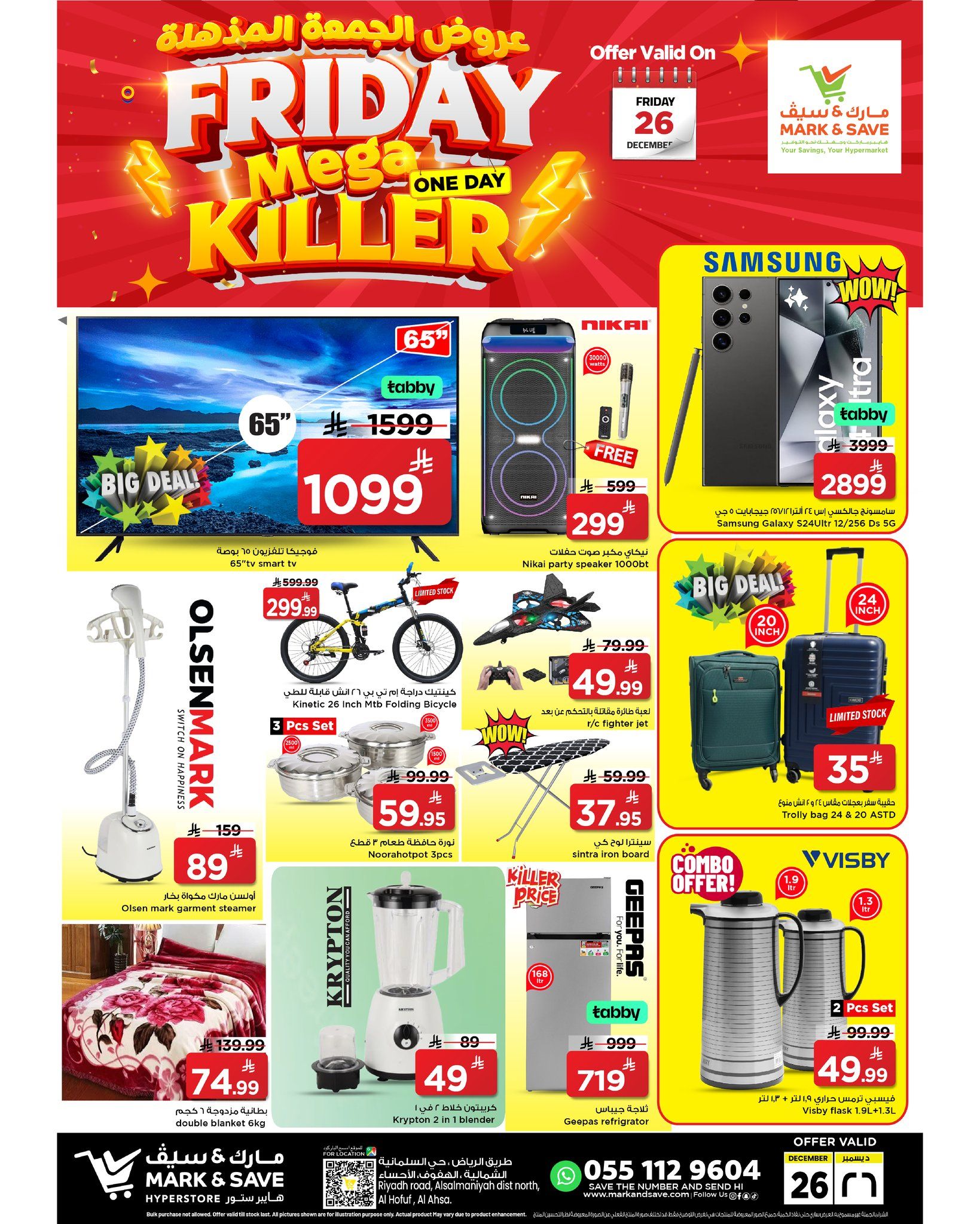 عروض مارك اند سيف الاحساء اليوم الجمعة 26 ديسمبر 2025 بتقدم تشكيلة من المنتجات منها دجاج فقيه المجمد وحليب مبخر المراعي وأرز بسمتي وحليب بودرة أنكور مع كرتون حليب ندى طويل الأجل كما تشمل بيض المائدة الطازج وشاي ليبتون يلو لابز البراد والبرتقال المصري والطماطم الطازجة والموز الفلبيني ومسحوق غسيل تايد