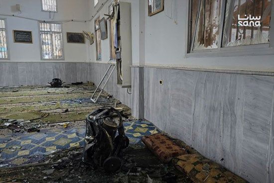 من جانبه باشرت فرق الدفاع المدني، على إزالة آثار الدمار في مسجد الإمام علي بن أبي طالب بحي وادي الذهب في حمص جراء انفجار عبوات ناسفة بحسب التحقيقات الأولية.
