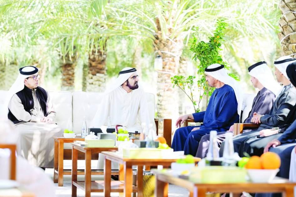 على الصعيد الوطني وتبادل الأحاديث الأخوية الودية، استقبل صاحب السمو الشيخ محمد بن زايد آل نهيان رئيس الدولة، حفظه الله، أخاه صاحب السمو الشيخ محمد بن راشد آل مكتوم، نائب رئيس الدولة رئيس مجلس الوزراء حاكم دبي، رعاه الله، وتبادل سموهما، خلال اللقاء الذي جرى في قصر الروضة في مدينة العين، الأحاديث الأخوية الودية وبحثا عدداً من الموضوعات التي تهم شؤون الوطن والمواطن والسبل الكفيلة بتعزيز مسيرة الدولة التنموية الطموحة والعمل على تسريع إنجاز المستهدفات الوطنية خلال المرحلة المقبلة.