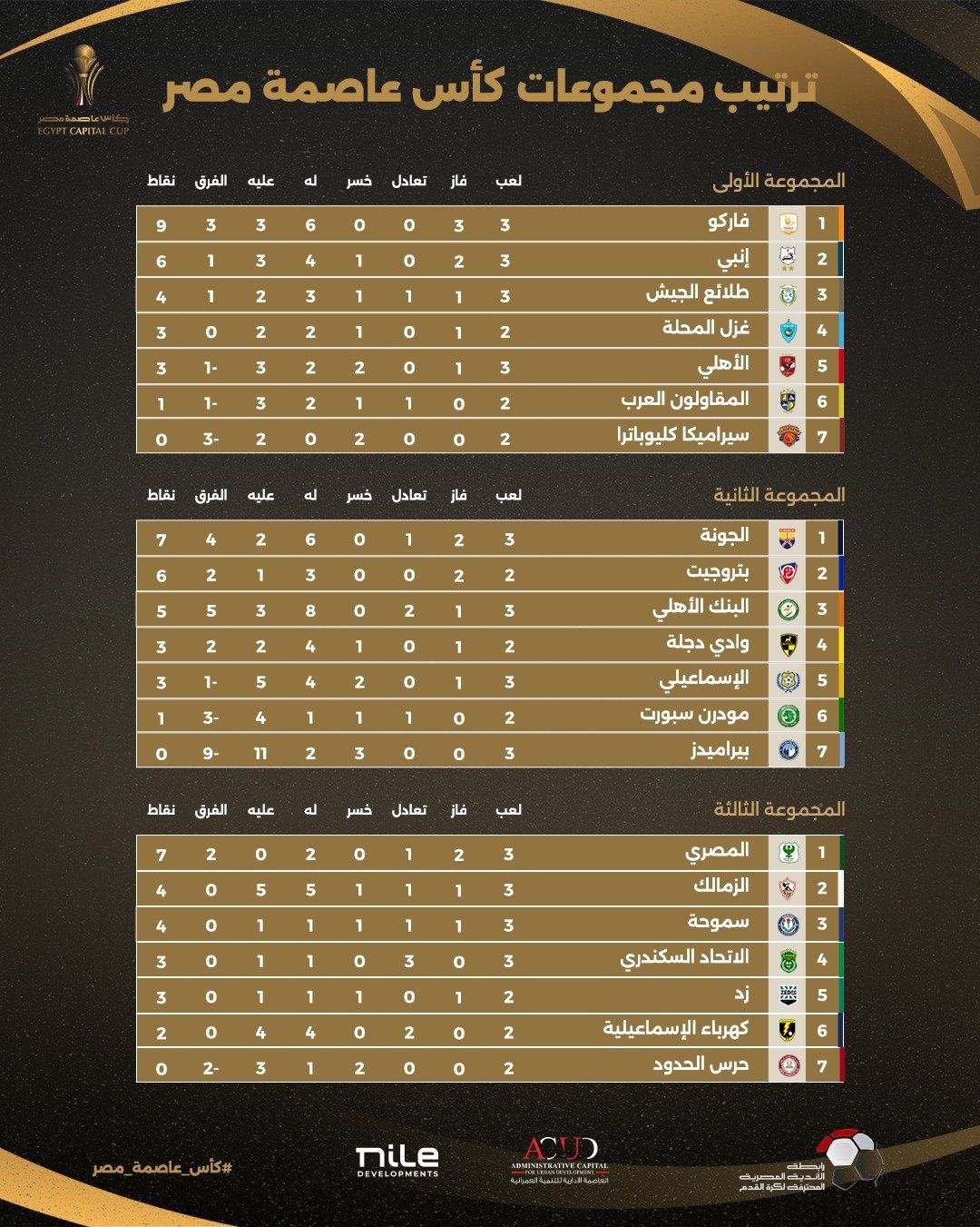ترتيب مجموعات كأس عاصمة مصر