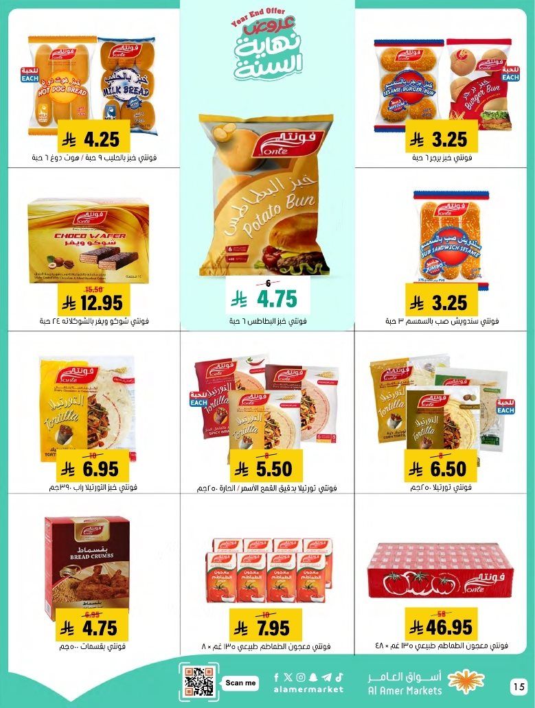 عروض اسواق العامر الاسبوعية السبت 7 رجب 1447هـ و تحتوي علي قطع اللحم بالعظم ولحم الغنم والسواكني والدجاج إضافة إلى تشكيلة من الكفتة والبرغر والسجق و بتوفر أيضا تشكيلة من الجبن والاجبان البيضاء والصفراء والقشقوان واللبنة والسلطات الجاهزة و منتجات البقالة الأساسية إضافة إلى البسكويت والمكرونة والمناديل