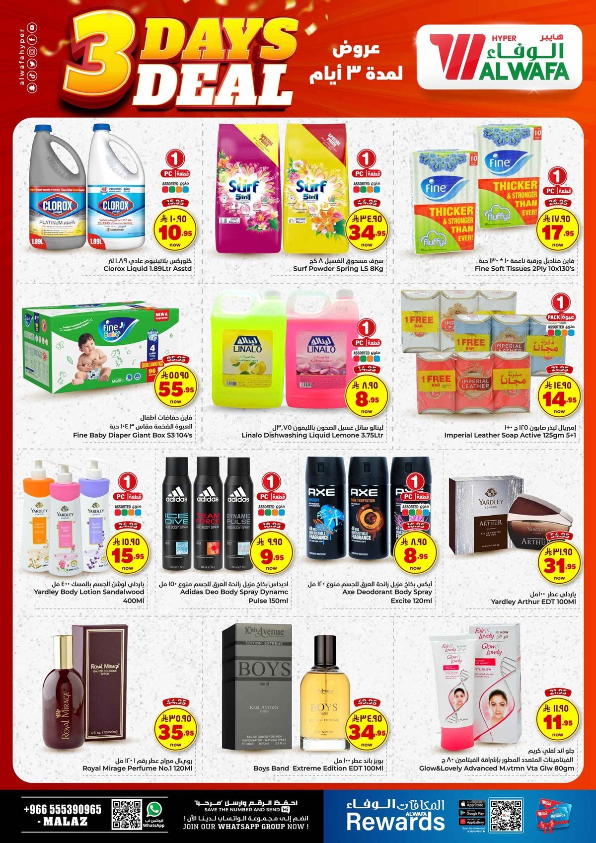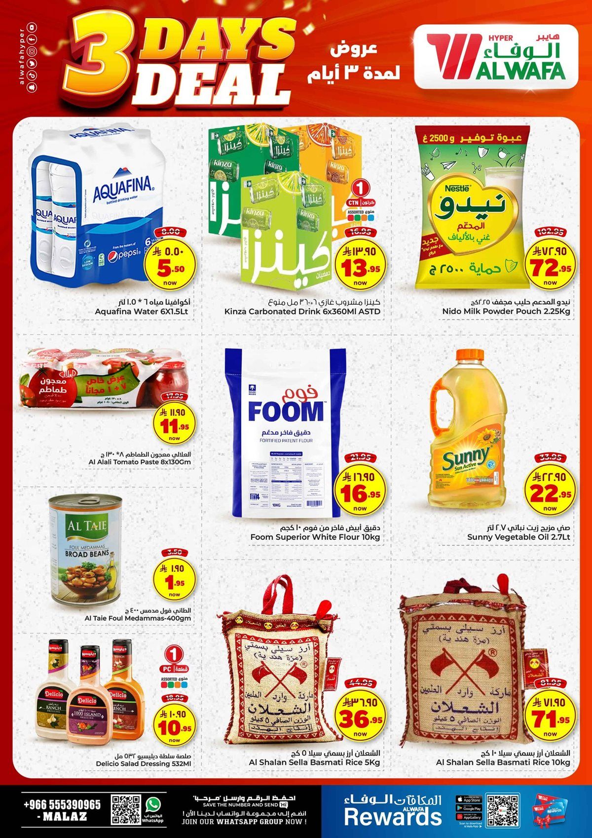 عروض الوفاء هايبر ماركت الطازجة الاحد 8-7-1447هـ بتقدم ليكم شاي الكبوس وحليب بودرة نادك والمياه المعبأة ومنتجات الحليب إلى جانب سكر ناعم وأرز بسمتي فاخر ودجاج مجمد وبيض طازج ومنظفات الغسيل وسوائل معطر ومنعم الأقمشة بالإضافة إلى الأسماك الطازجة واللحوم الحمراء والحمضيات وغيرها من المنتجات باقل سعر