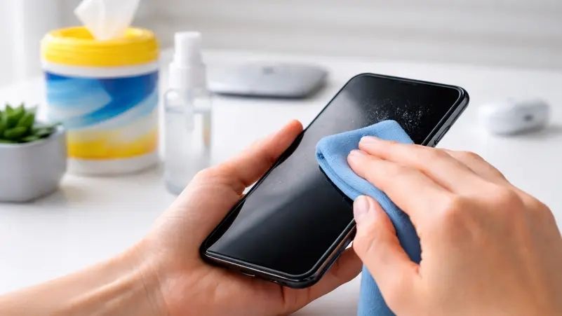 وكل ما تحتاجه لتنظيف هاتفك هو قطعة قماش ناعمة ومحلول تنظيف آمن ومخصص لقتل الجراثيم دون إتلاف الهاتف.