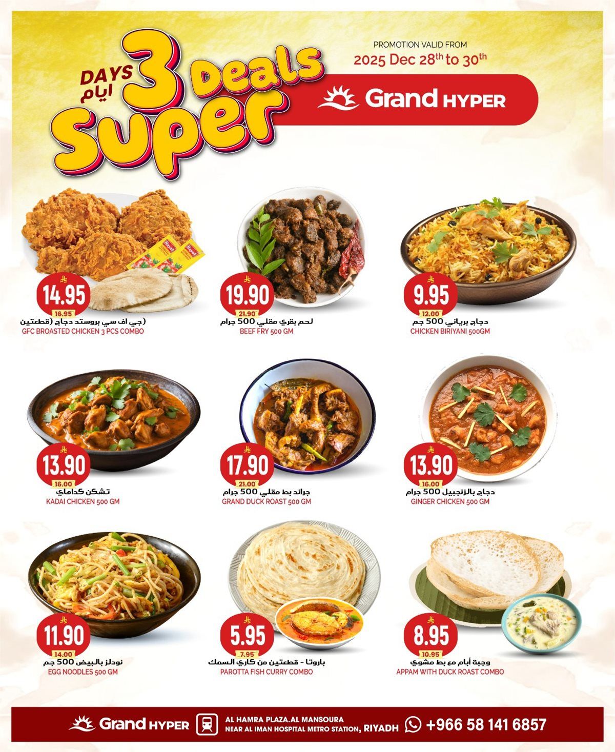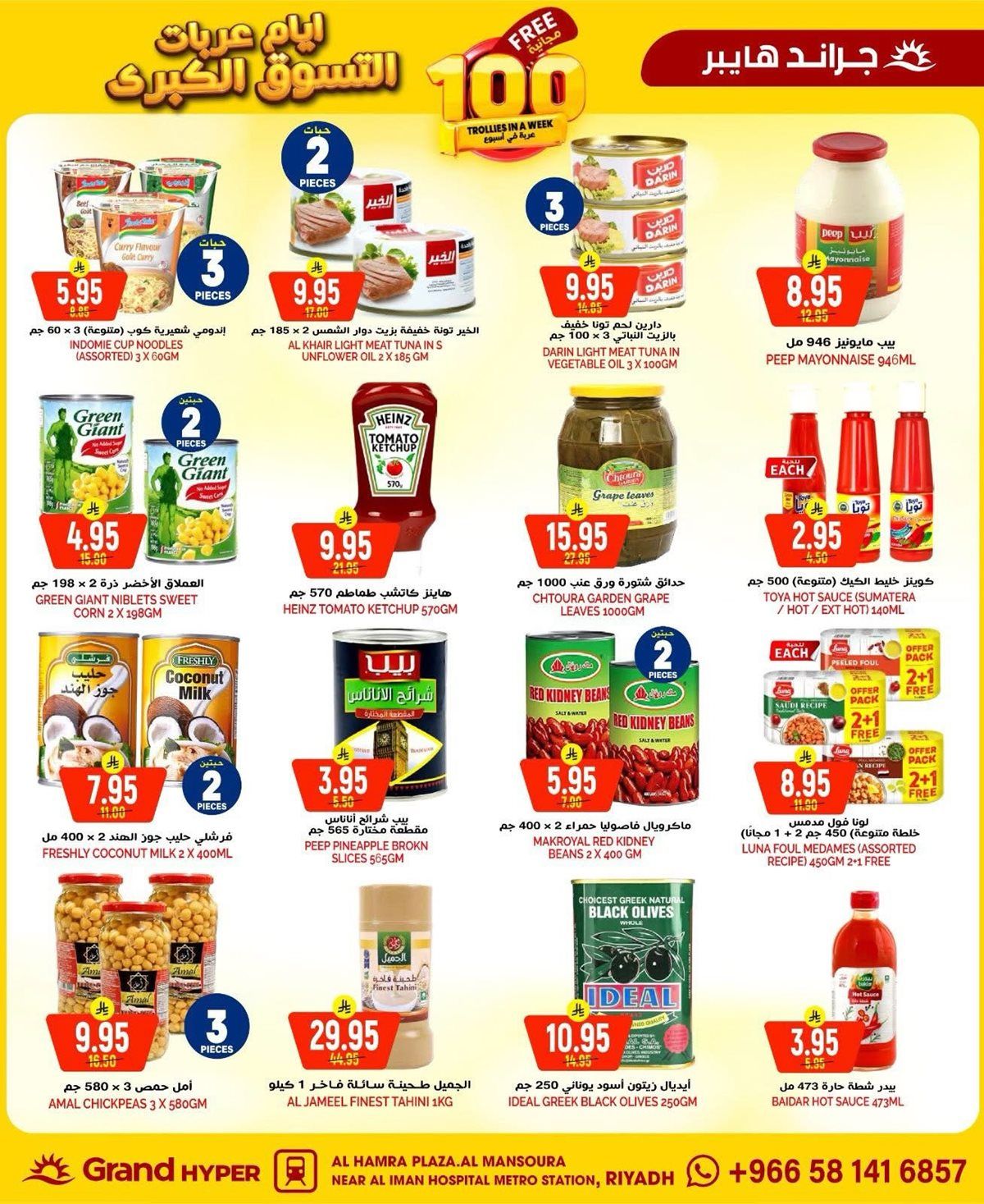 نقدم لكم احدث عروض جراند هايبر الرياض الاحد 28 ديسمبر 2025 و تحتوي علي أنواع المكرونة والتونة والمايونيز وصلصة الكاتشب وحبوب الذرة الحلوة وحليب جوز الهند والفاصوليا الحمراء والحمص المعلب إضافة إلى ورق العنب والزيتون الأسود والطحينة الفاخرة كما تمتد الي اللحوم الطازجة ومنتجات العناية الشخصية والمنظفات