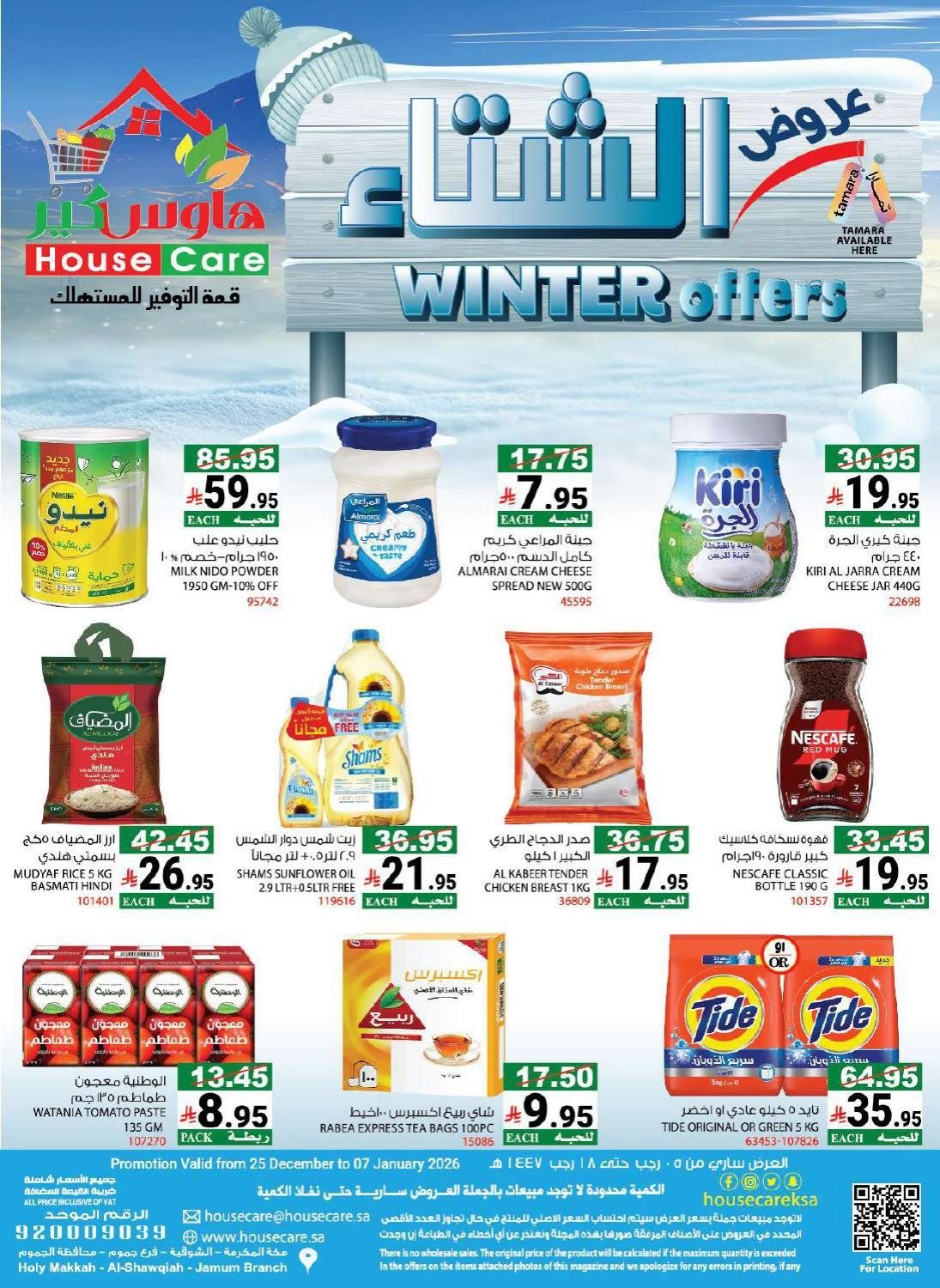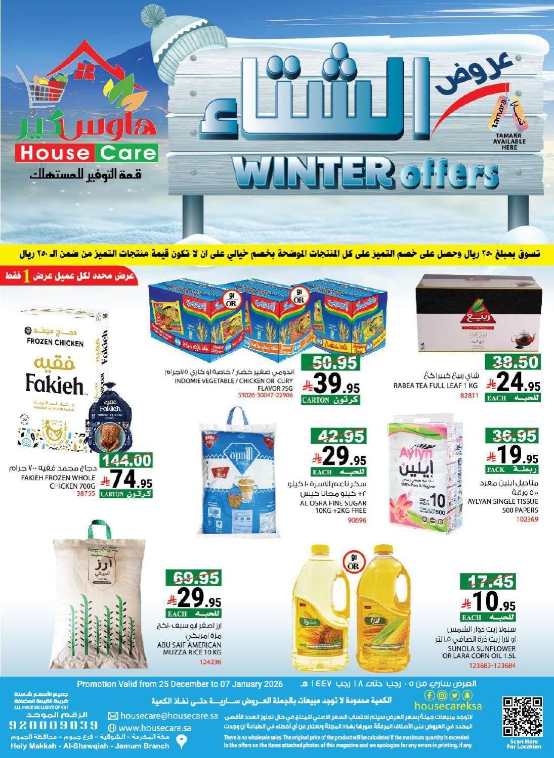عروض هاوس كير بتاريخ الاحد 28 ديسمبر 2025 و تحتوي علي الدجاج الكامل والفخذين والصدر والأجنحة والنقانق والبرغر والناجتس والفيش آند تشيبس والدجاج المقلي الجاهز والفخوذ المتبلة والدجاج الهندي والصيني إلى جانب منتجات الدجاج المفروم والمقلي والمشوي و تمتد إلى اللحوم الطازجة والمنتجات الأساسية و منتجات البقالة