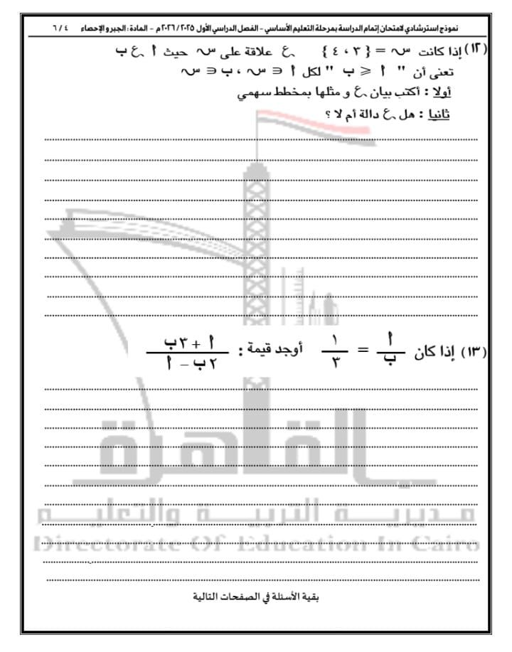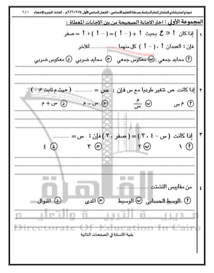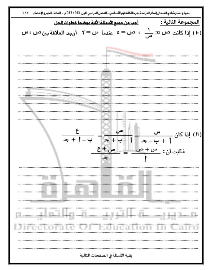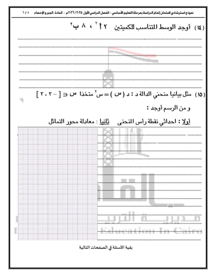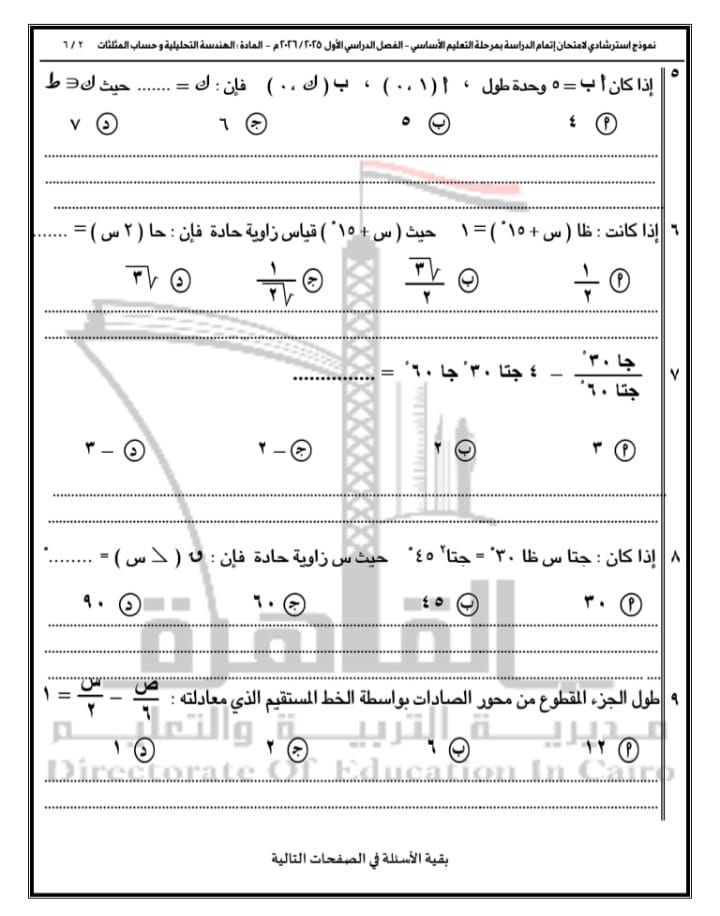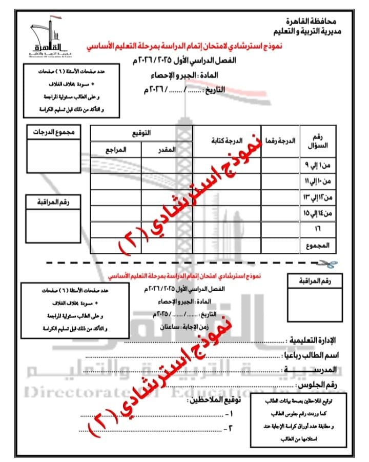 وأعلنت المديرية عن توفير النموذج الثاني في مادة الرياضيات بفرعيها (الجبر والاحتمال – الهندسة المستوية) لطلاب الشهادة الإعدادية للفصل الدراسي الأول للعام الدراسي 2025 / 2026، وذلك في إطار جهوده المديرية المستمرة للارتقاء بالمنظومة التعليمية وتقديم الدعم الكامل للطلاب.