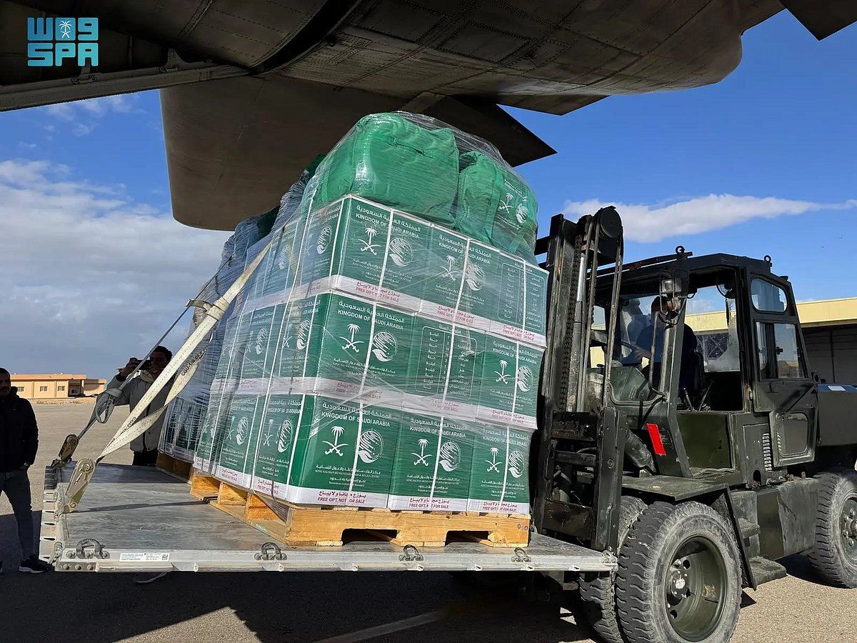 وتحمل الطائرة السعودية الـ(77) على متنها سلالًا غذائية وحقائب إيوائية، تمهيدًا لنقلها إلى المتضررين من الشعب الفلسطيني الشقيق داخل قطاع غزة.