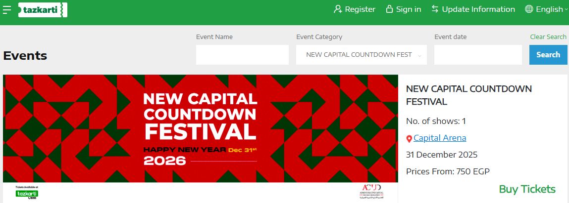 طرحت شركة تذكرتي، تذاكر حفلتها لرأس السنة المقرر لها يوم الأربعاء المقبل، والتي سيحيها كل من النجم تامر حسني والنجمة اللبنانية اليسا والنجم تامر عاشور، والتي تبدأ من 750 جنية، ضمن مهرجان العاصمة الإدارية.