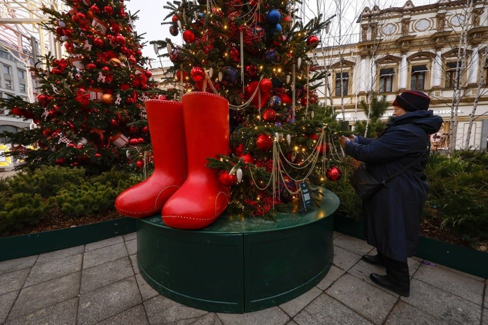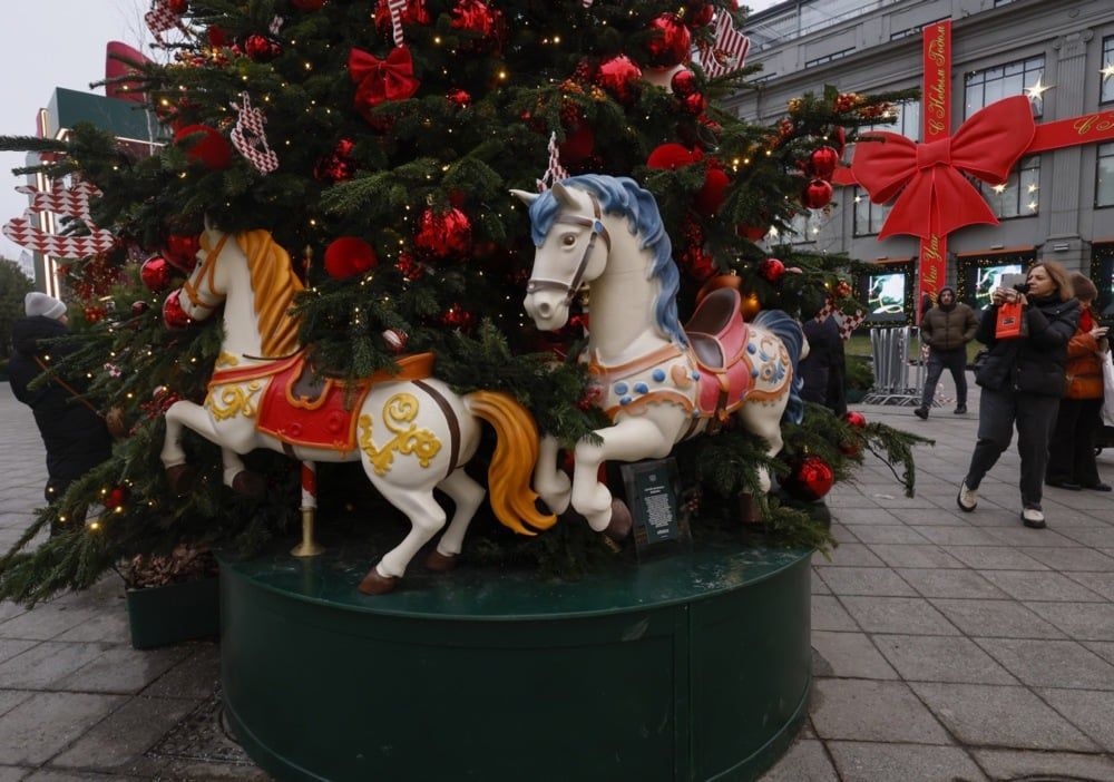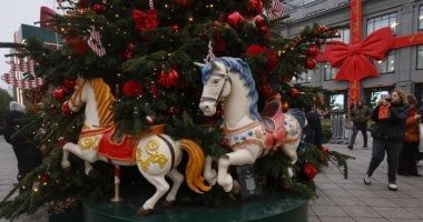 وظهرت أشجار عيد الميلاد، ومجسمات بابا نويل، والبالونات،