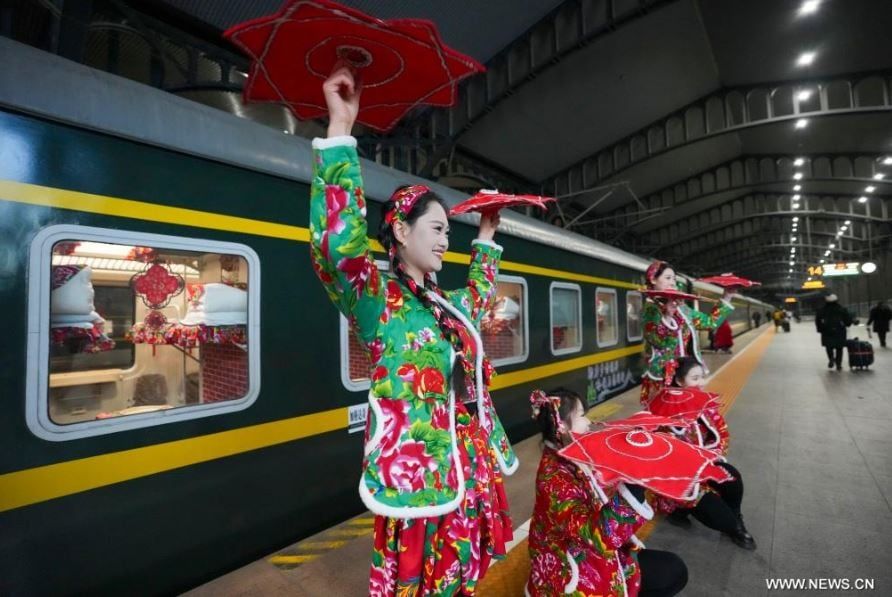 انطلق القطار رقم "K7041"، والذى يعد أول قطار يحمل طابع الثقافة الشعبية لشمال شرقي الصين ويتم تشغيله، من محطة هاربين للسكك الحديدية متوجها إلى مدينة موخه.