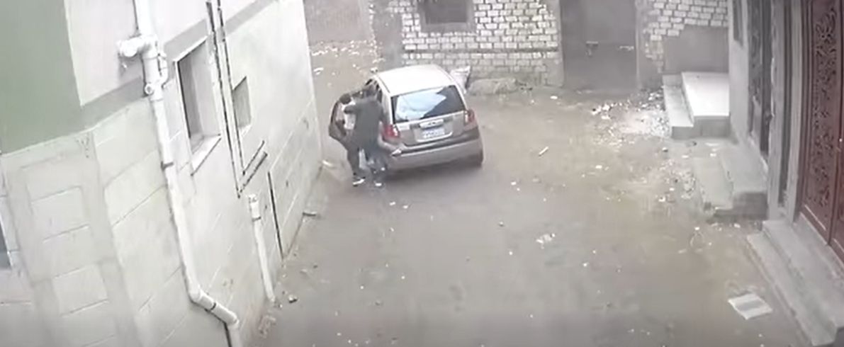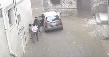 الخاطف يطرح الخال أرضا بعد وضع الطفل في السيارة