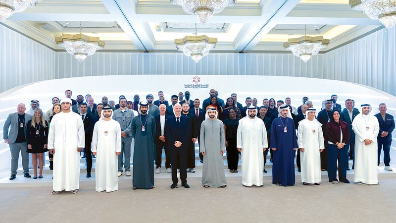 وقد التقطت لسموّ الشيخ حمدان بن محمد بن راشد آل مكتوم صورة جماعية، ضمت العديد من نجوم الرياضة العالمية والشخصيات القيادية والرياضية والمتحدثين المشاركين في أعمال «القمة العالمية للرياضة».