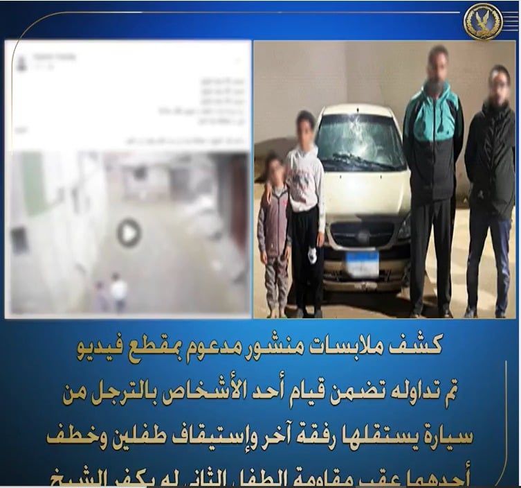 الثلاثاء، 30 ديسمبر 2025 02:21 صكشفت وزارة الداخلية، ملابسات منشور مدعوم بمقطع فيديو تم تداوله بمواقع التواصل الاجتماعي تضمن قيام أحد الأشخاص بالترجل من سيارة يستقلها رفقة آخر واستيقاف طفلين وخطف أحدهما عقب مقاومة الطفل الثاني له بكفر الشيخ.
