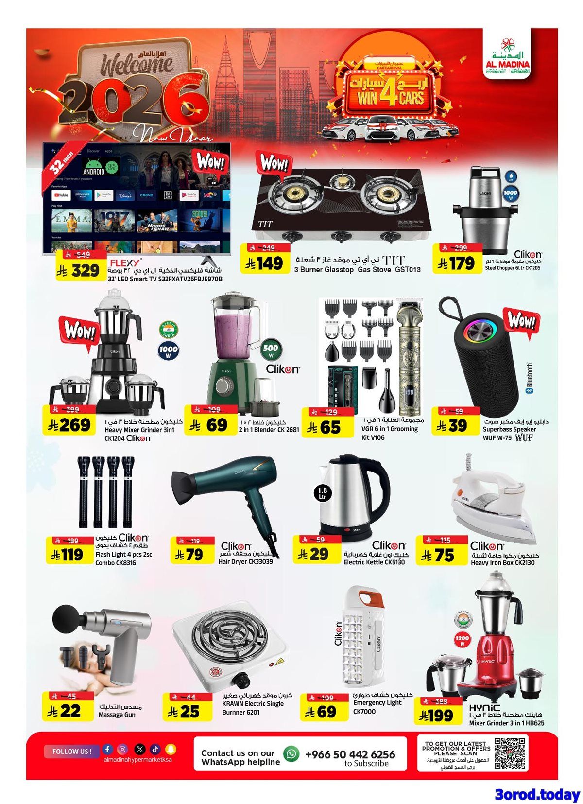 عروض المدينة هايبر ماركت الأربعاء 31/12/2025بتشمل أجهزة منزلية ثلاجة تبريد ومروحة سقف وسخان ماء وفرن كهربائي وجهاز فرم و بتوفر كمان تشكيلة من المنتجات الغذائية تضم الشعيرية وزيت السمسم ومعجون الطماطم والتمر والمربى وغيرها من المنتجات و باقل الاسعار بمناسبة العام الجديد فقط ابقوا معنا ليصلكم كل جديد .