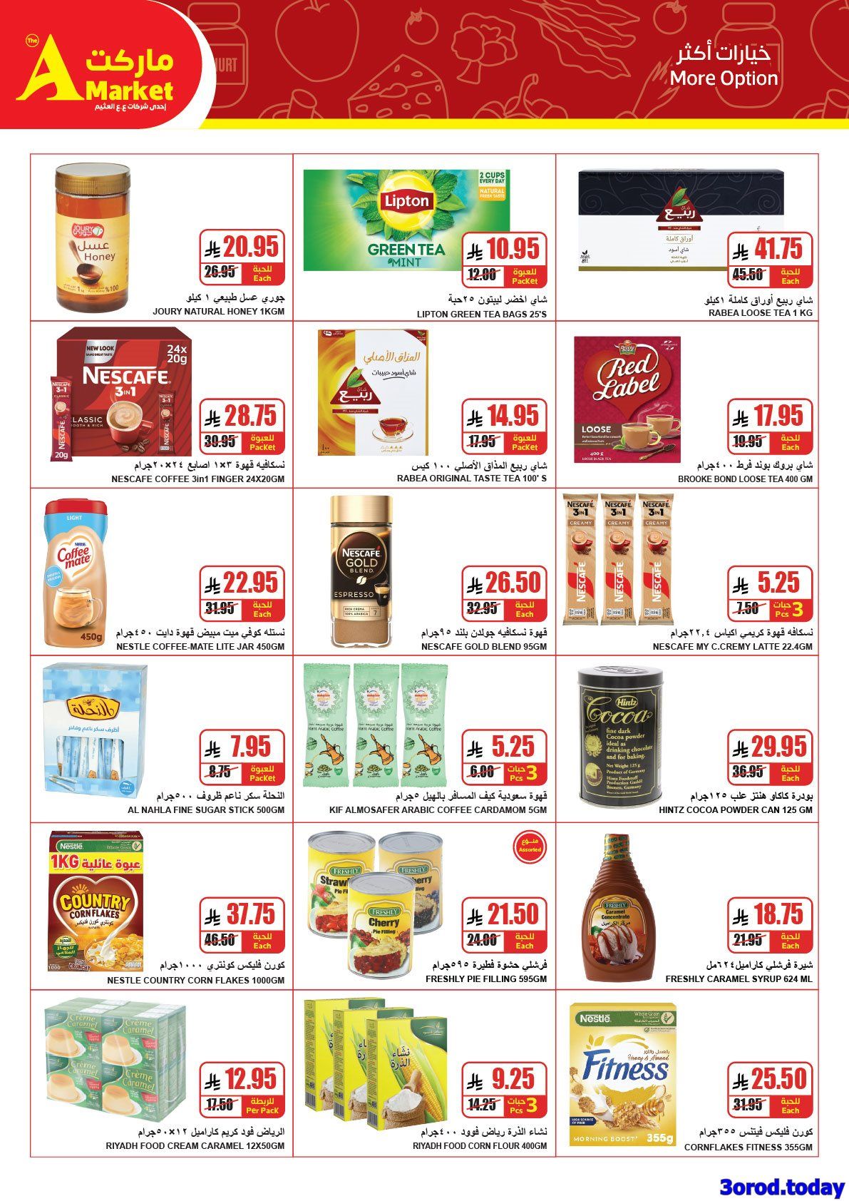 تحتوي عروض ايه ماركت الرياض علي : صدور دجاج طرية رويال – مسحوق غسيل ثريل – طماطم صندوق حراري – ليبتون أكياس شاي – بوك جبنة بيضاء كاسات – صابون إنشانتور متنوع – بصل كيس صغير – حليب بودرة إكوادور – تشيل بيري بوب كورن/ناجت الدجاج – شامبو بيرت بلاس