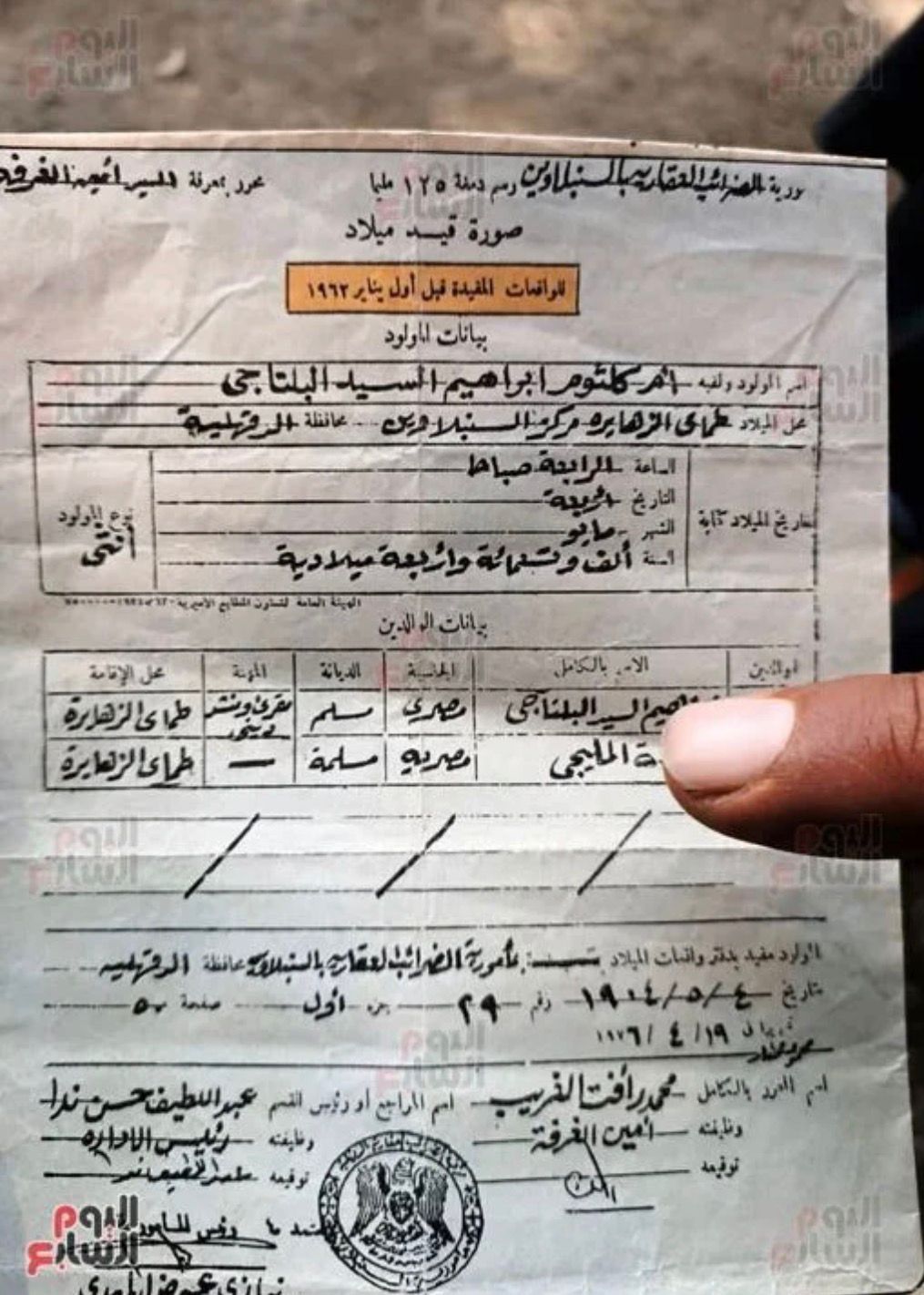 وقد التقى "اليوم السابع" من خلال مراسله فى الدقهلية الزميل شريف الديب منذ فترة بخالد سمير خالد حفيد أم كلثوم، من قرية طماى الزهايرة بمحافظة الدقهلية، وقدم تغطية خاصة وفجّر مفاجأة أن التاريخ الحقيقى للميلاد 4 مايو 1904، وتوفيت عن عمر 71 عاما وليس 76 كما يقول المؤرخون، وكشف اسمها كوكب الشرق الحقيقى هو أم كلثوم إبراهيم سيد البلتاجى، وليس فاطمة إبراهيم سيد البلتاجى وهو الاسم الموجود فى شهادة الميلاد.