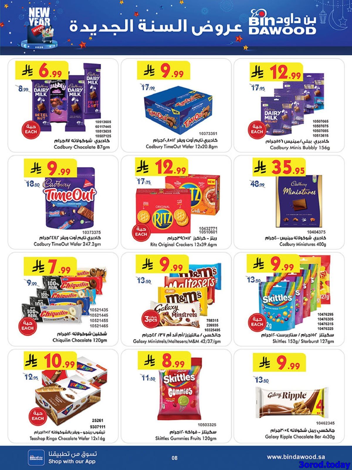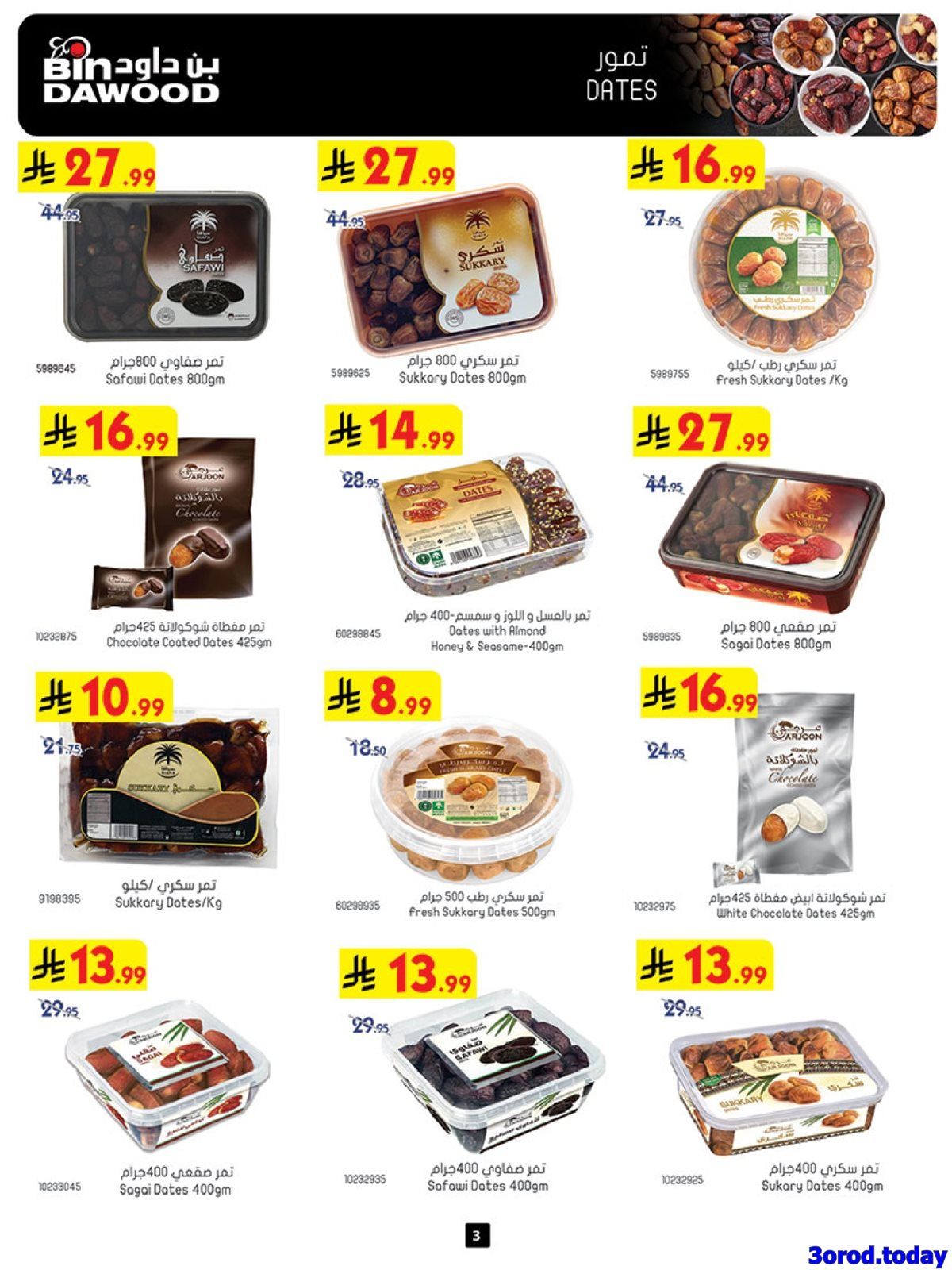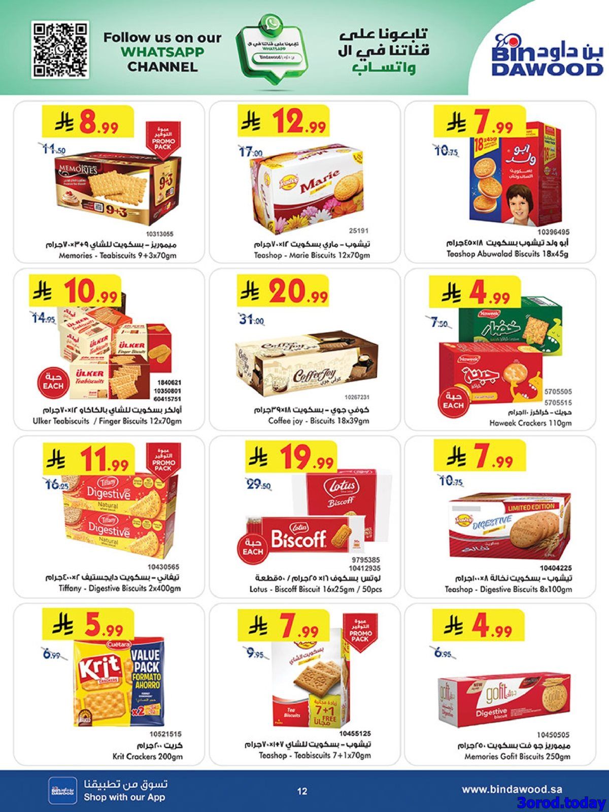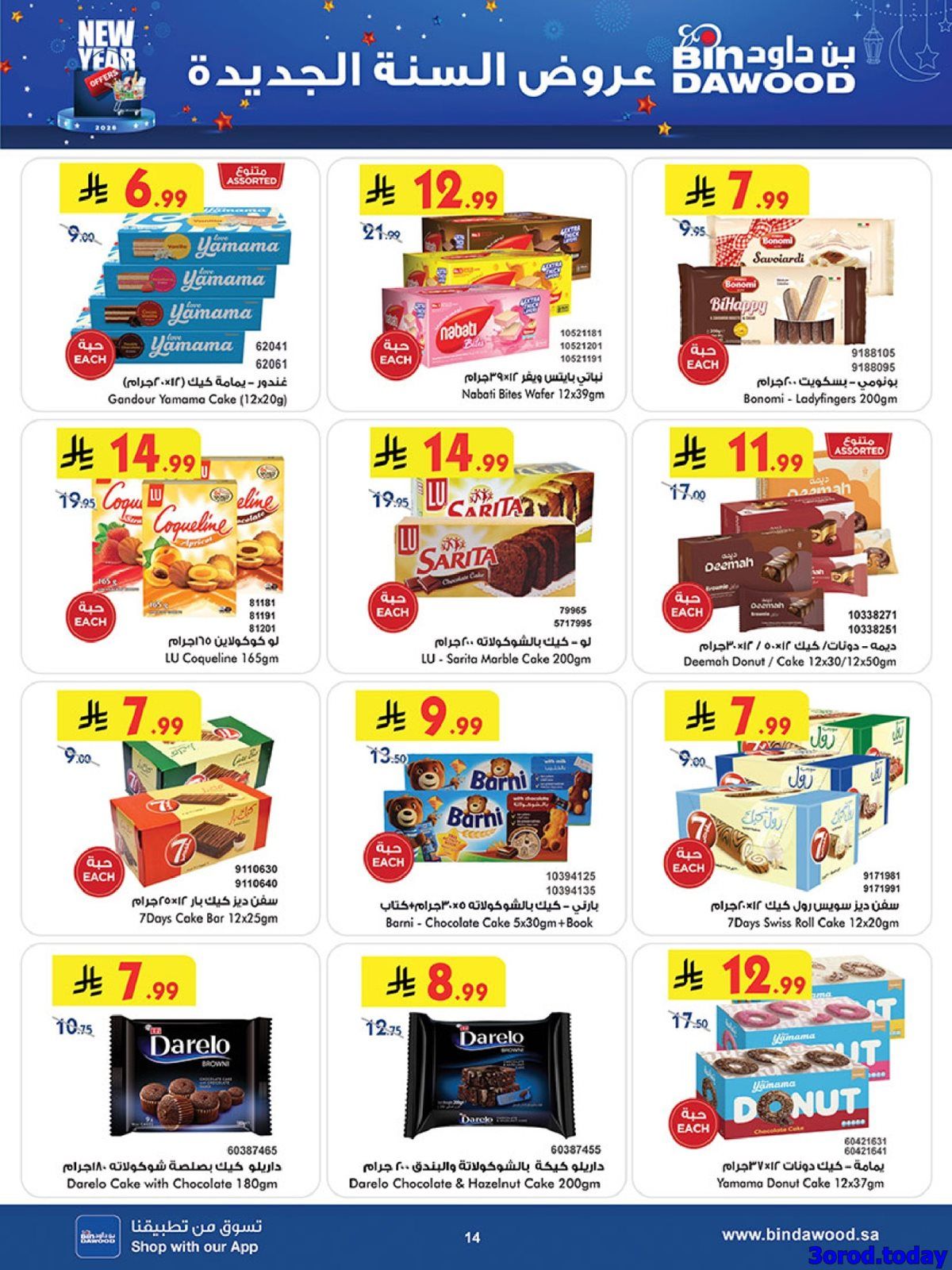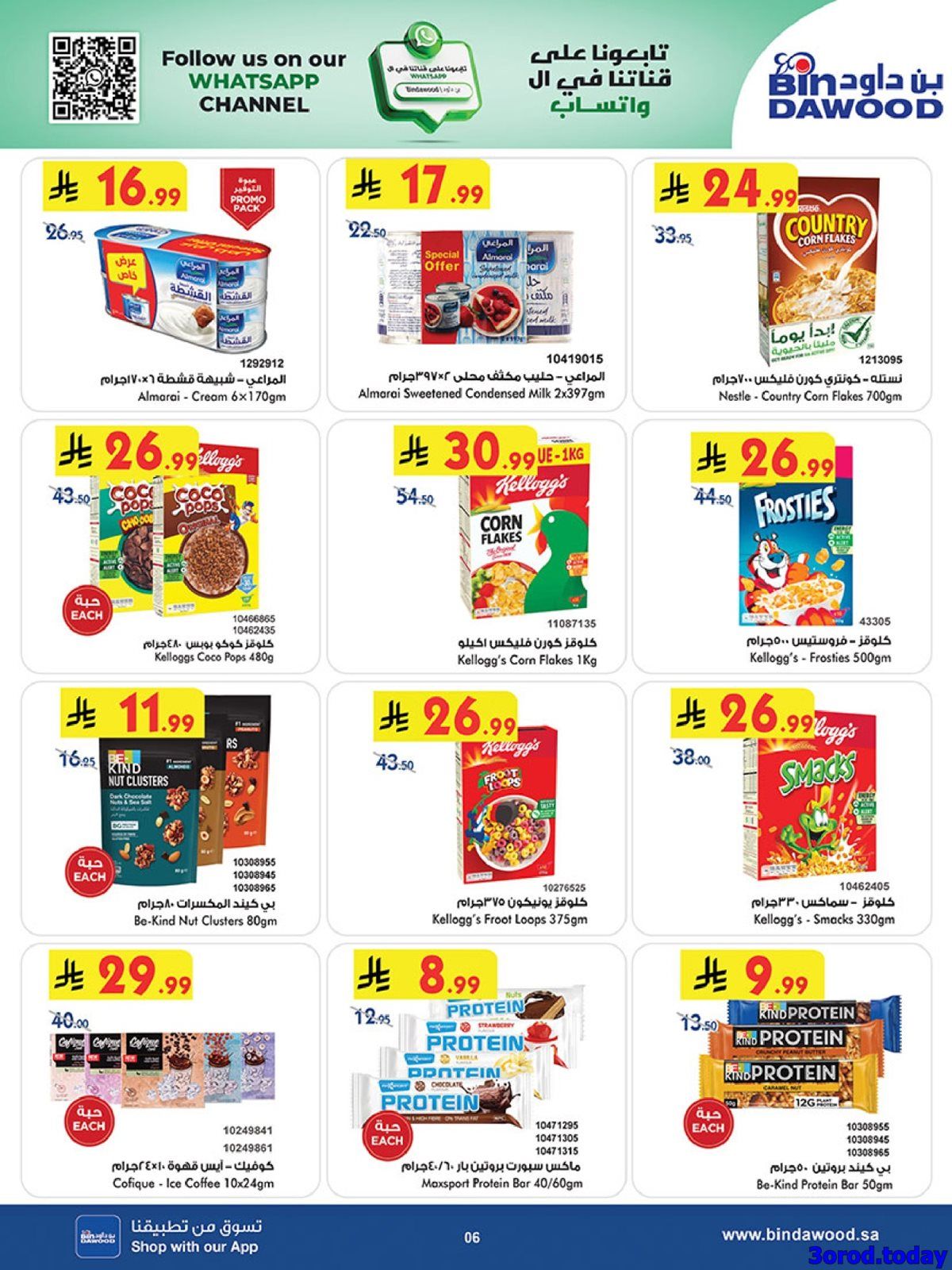 تضم عروض بن داود الأسبوعية علي : نوتيلا بسكويت – كندر دليس كيك – مرسي شوكولاتة – حلواني وطحان معمول بالتمر – سفن دايز كرواسون – ويرترز أصلي حلوى – المراعي حليب مجفف – فرشكو حليب مجفف شاي الصمان – تويننجز شاي – تتلي شاي أسود قوي – شاي أحمد – شاي أحمد بنكهات متنوعة – تيم هورتنز قهوة – تتلي شاي أخضر