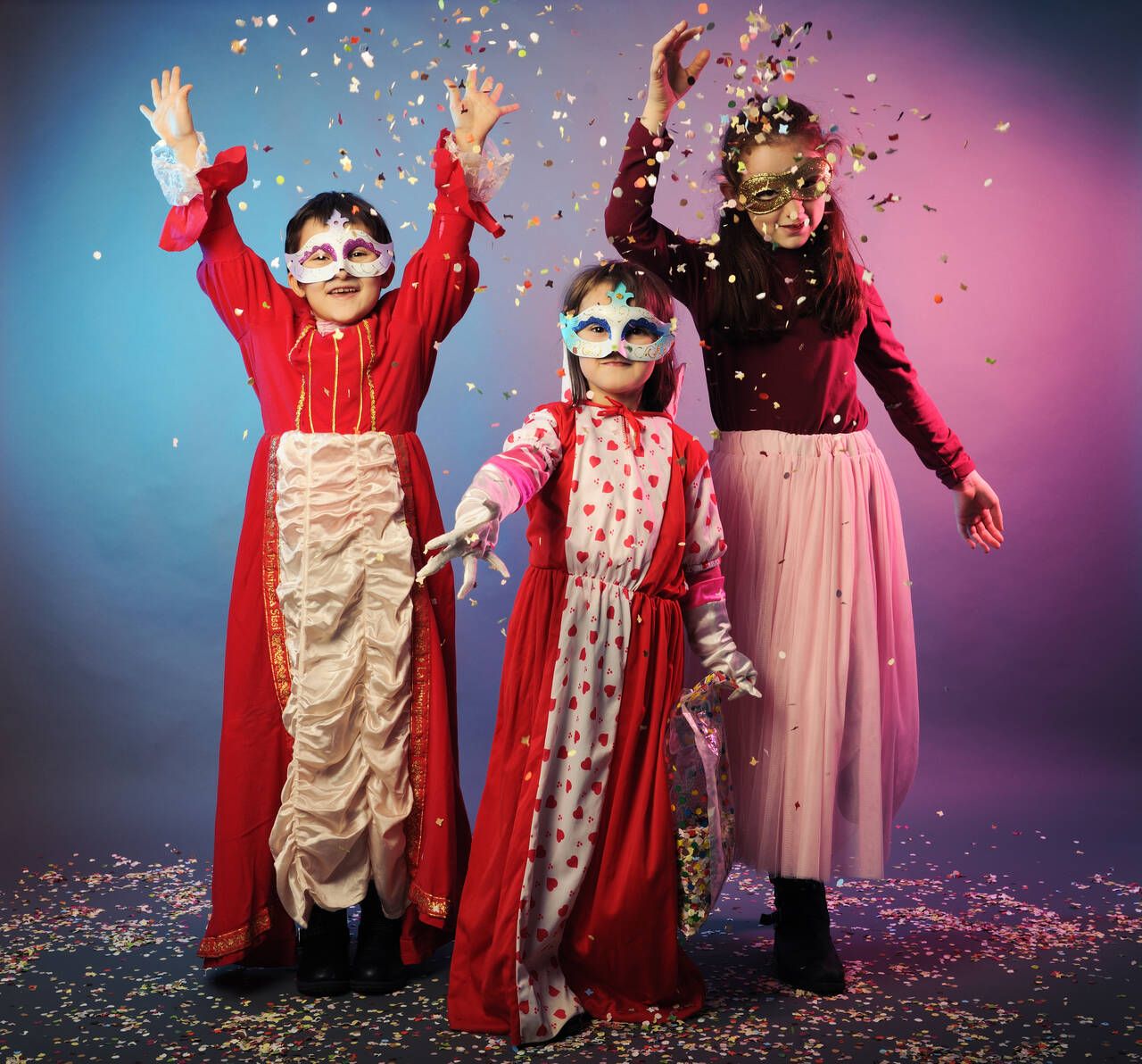 يظهر "الكونفيتي" المتناثر والملون وكأنه جزء من المشهد الاحتفالي، مما يكمل المظهر العام للمرح.