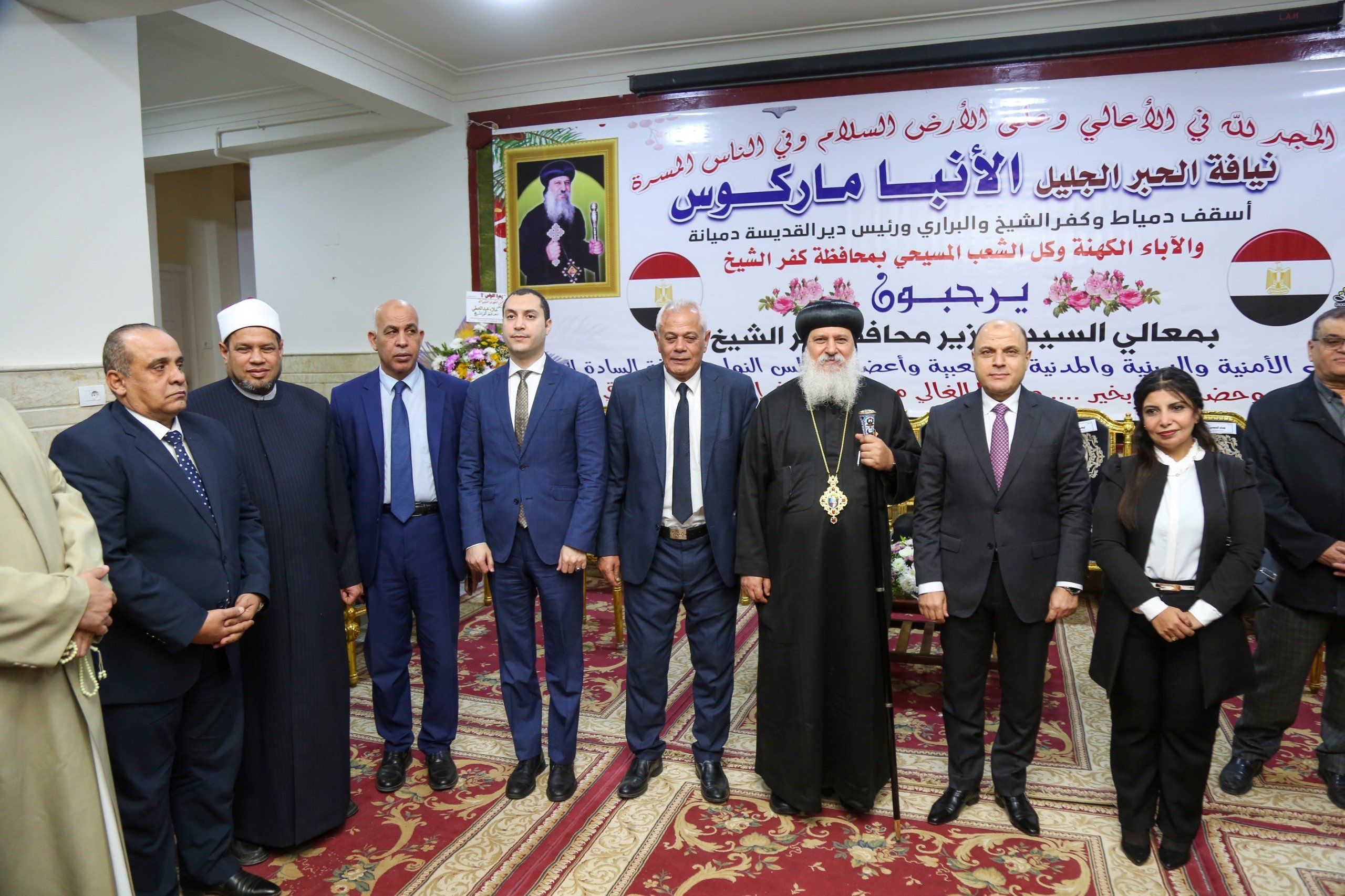 وكان في استقبال محافظ كفر الشيخ نيافة الحبر الجليل الأنبا ماركوس، أسقف دمياط وكفر الشيخ والبراري ورئيس دير القديسة دميانة ببلقاس، وعدد من الآباء الكهنة ورجال الدين المسيحي والإسلامي، وسط ترحيب كبير بمشاركة المحافظ في هذه المناسبة، بحضور الدكتور عمرو البشبيشي، نائب محافظ كفرالشيخ، واللواء إيهاب عطية، مساعد وزير الداخلية - مدير أمن كفر الشيخ، والدكتور إسماعيل إبراهيم، القائم بعمل رئيس جامعة كفر الشيخ، واللواء محمد شعير، السكرتير العام المساعد، ، واللواء دكتور سامح العزب، مدير إدارة المرور، والدكتورة أماني شاكر، نائب رئيس الجامعة، والنائب محمد العرابي، والنائبة ماري جرجس، أعضاء مجلس النواب، وأحمد عيسى، رئيس مركز ومدينة كفر الشيخ، وأعضاء بيت العائلة بكفر الشيخ، وعدد من وكلاء الوزارات الخدمية، ورجال الأزهر الشريف والأوقاف، والآباء رعاة كنائس كفر الشيخ، وعدد كبير من الآباء الكهنة، والقيادات التنفيذية والشعبية، في مشهد يعكس وحدة الصف الوطني وتماسك النسيج المصري.
