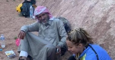 احدى السائحات مع الدليل البدوي أثناء طهى الطعام