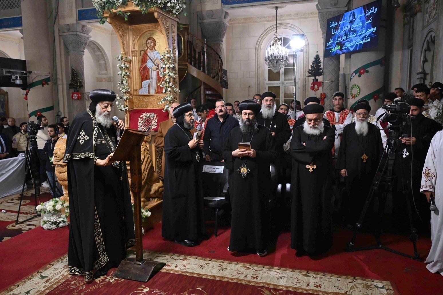 وعقب ختام التسبحة، ألقى قداسة البابا تواضروس الثاني كلمته، مهنئًا الحاضرين ببدء العام الجديد 2026، مؤكدًا أن الاحتفال برأس السنة داخل الكنيسة هو تقليد أصيل، نستقبل فيه العام الجديد من يد الله، داخل سفينة الخلاص، بالتسابيح والألحان والصلوات.