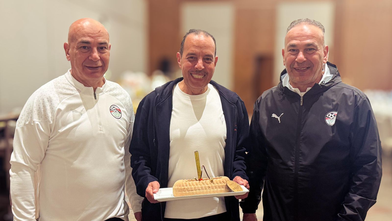 حرص منتخب مصر بقيادة التوأم حسام وإبراهيم حسن على الاحتفال بعيد ميلاد الرباعي حمادة الشربيني عضو مجلس إدارة اتحاد الكرة ورئيس البعثة وسعفان الصغير مدرب حراس مرمي المنتخب، وثنائي الفريق أسامة فيصل وأحمد عيد عقب انتهاء تدريب الفريق مساء اليوم.