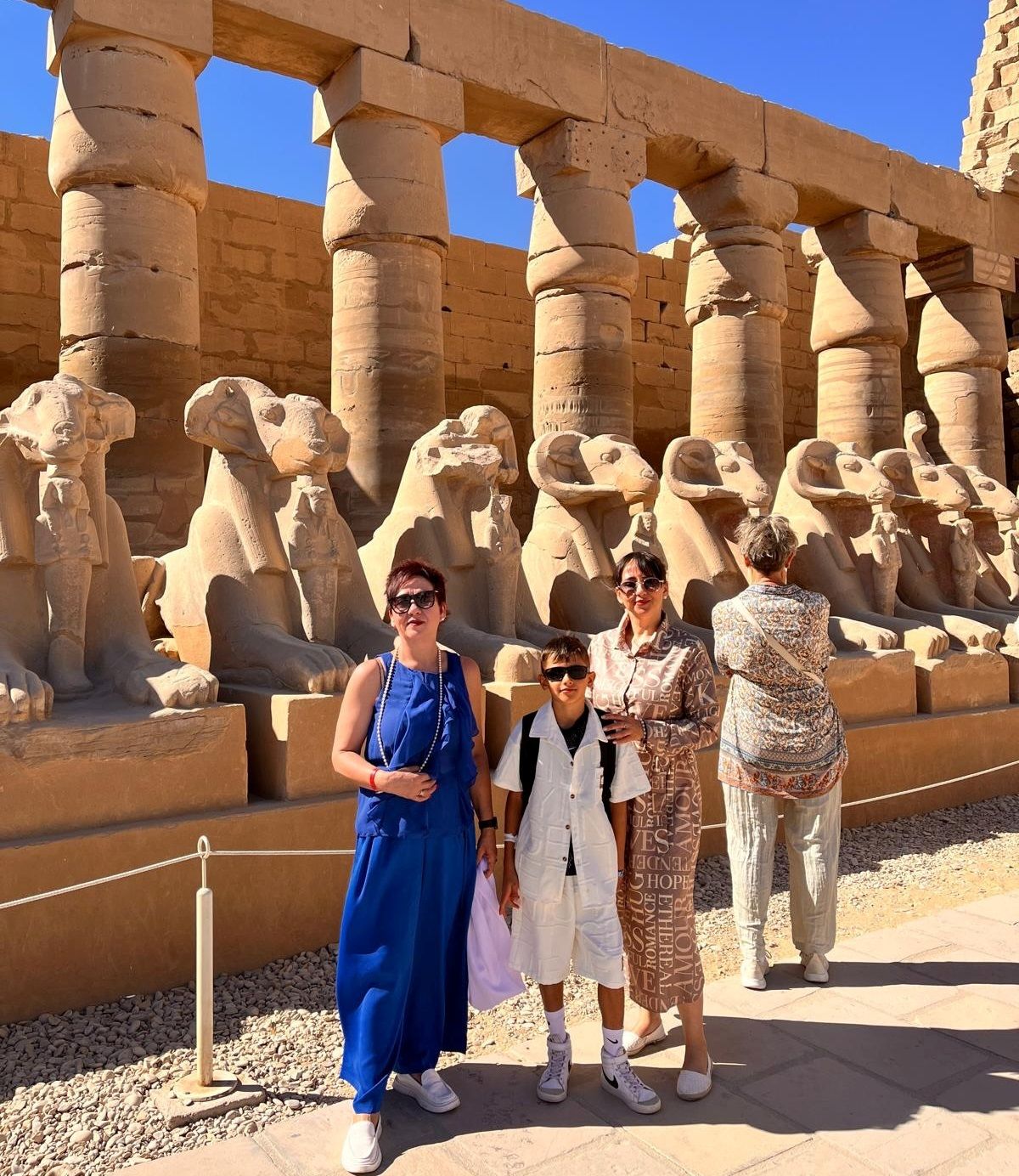 العائلات الأجانب مستمتعين بين كباش معابد الكرنك