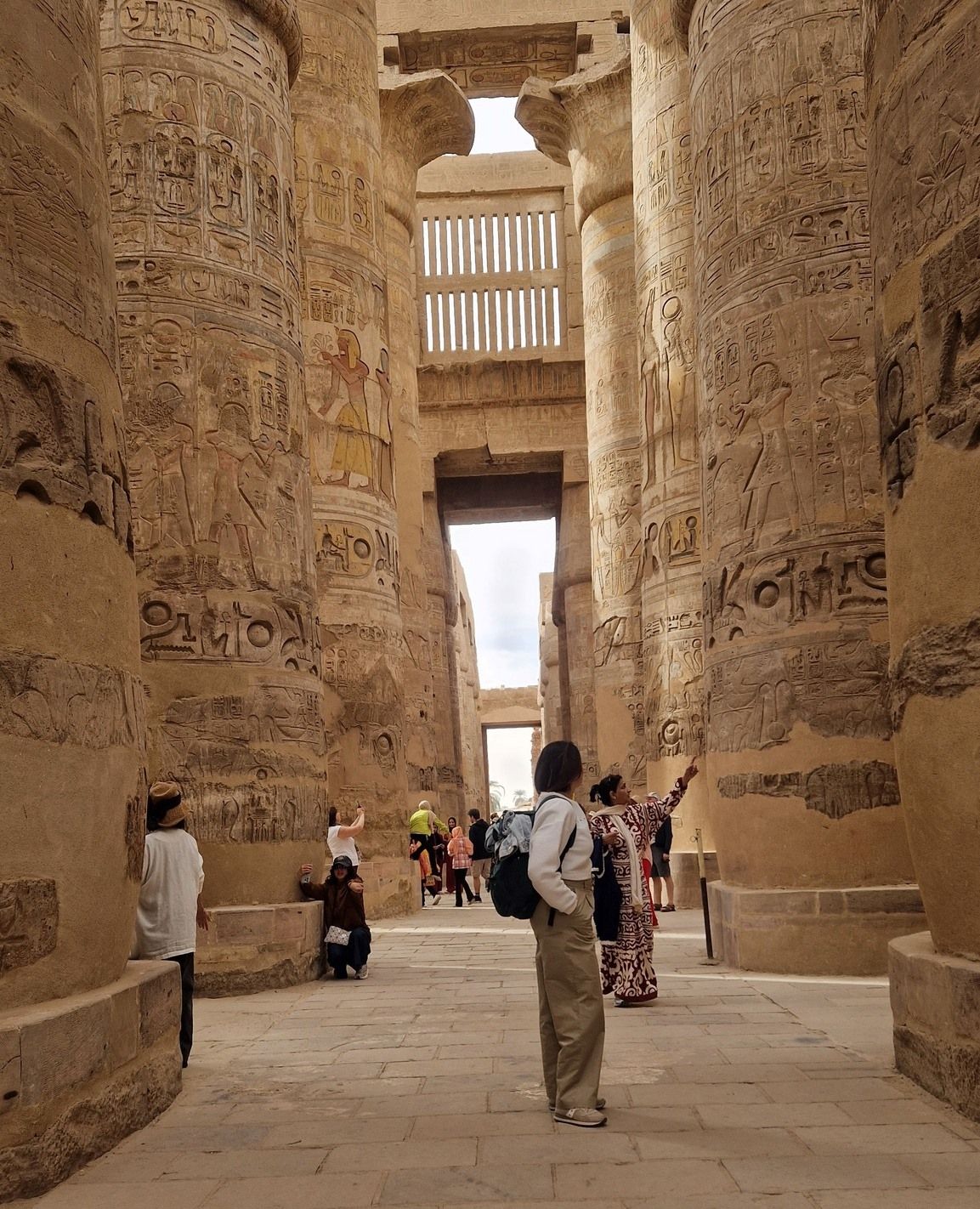 استمتاع الأجانب فى قلب صالة الأعمدة الكبرى بالكرنك