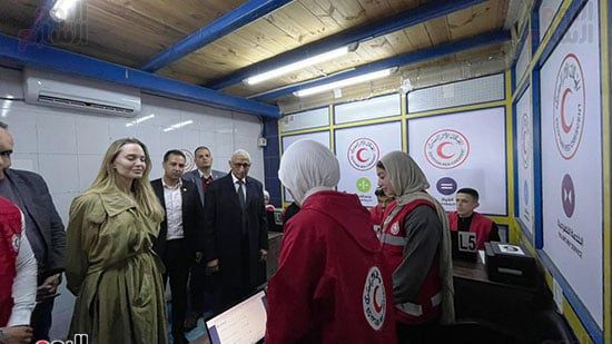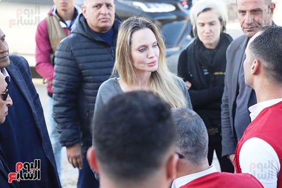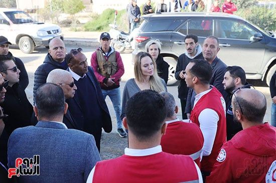 انجلينا جولى تتفقد مخازن الهلال الأحمر بمعبر رفح برفقة محافظ شمال سيناء