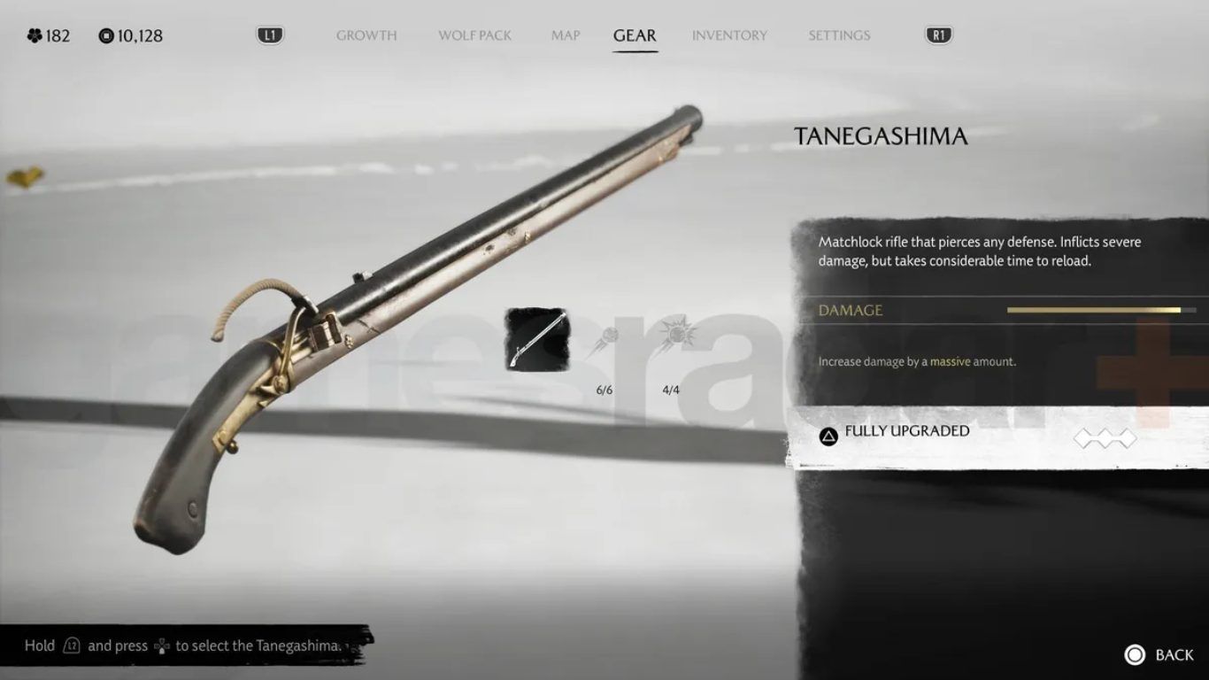تتضمن Ghost of Yotei سلاحين ناريين فقط وهما Tanzutsu matchlock pistol و Tanegashima matchlock rifle ويعد كل منهما مختلفا في طريقة الاستخدام والدور القتالي لكنه يشترك في ميزة أساسية تتمثل في القدرة على اختراق أي نوع من الدفاعات.