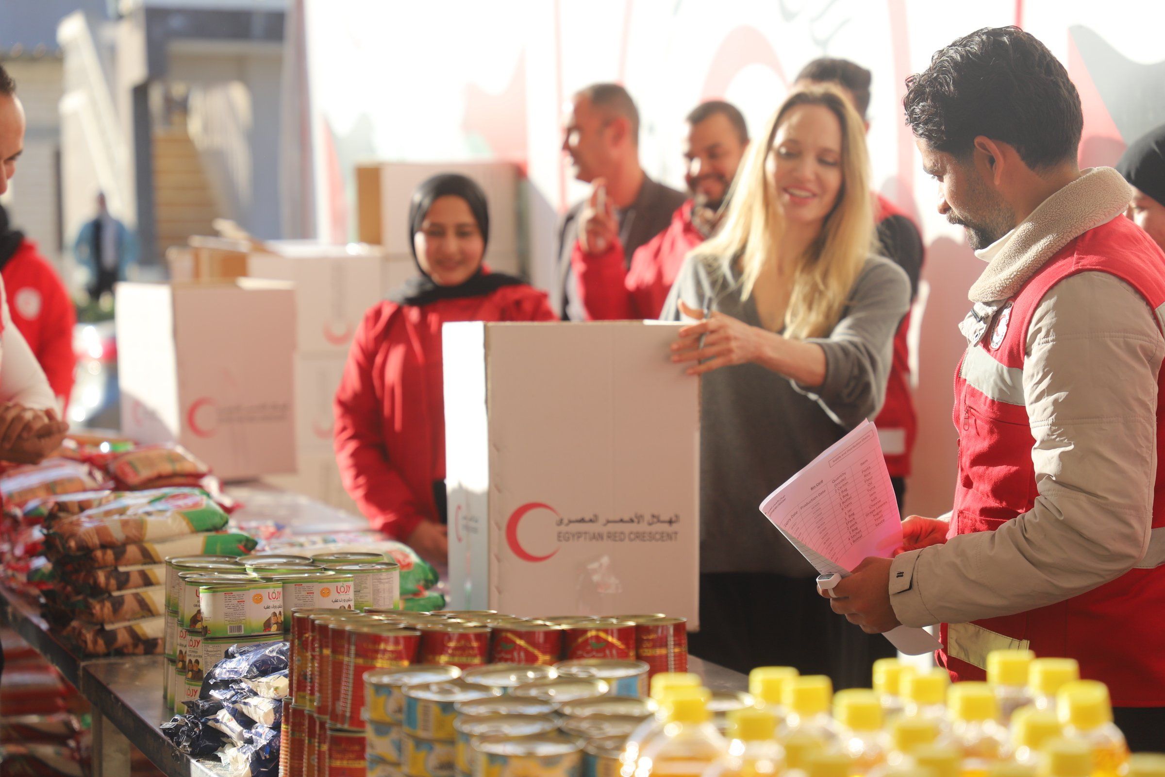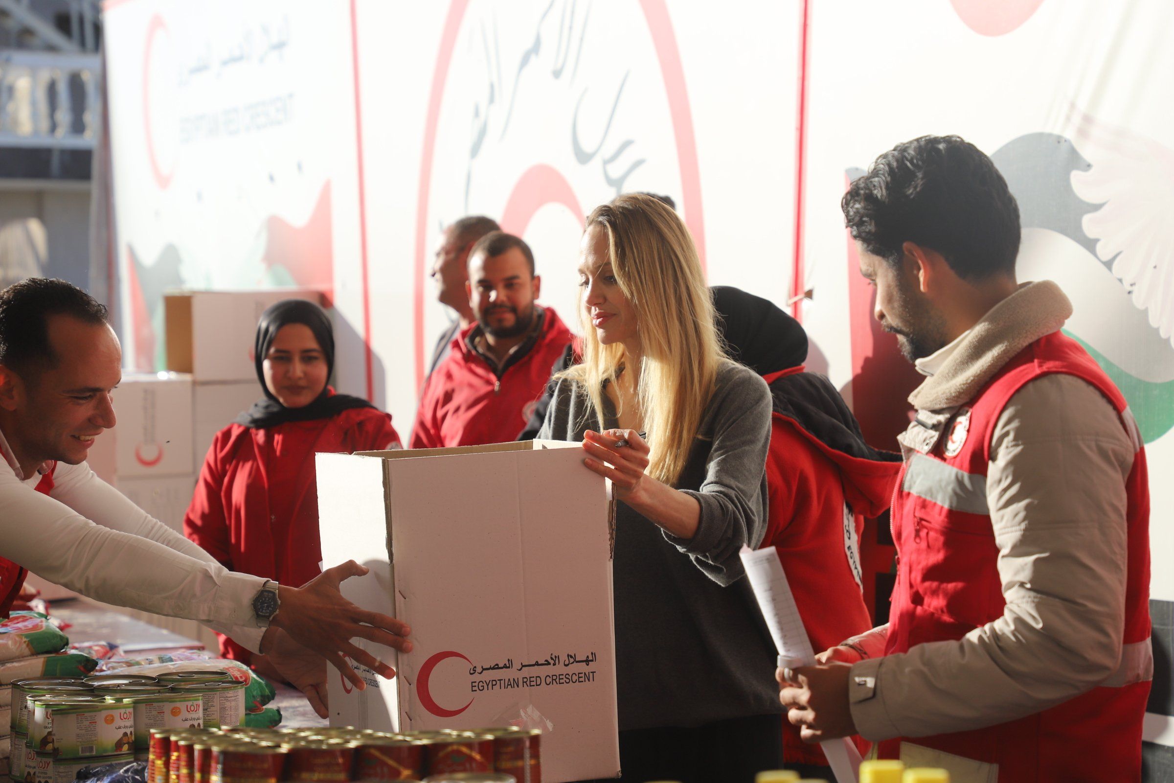 انبهار جولي بمتطوعات الهلال الأحمرلم تخفي انجيلينا جولي اعجابها بمشاركه السيدات في التطوع خصوصا صغار السن ومن ابناء مدينه العريش حيث اصرت علي الالتقاء بهم والتصوير معهم مما يعكس تعزيز روح العمل ويحفزهم علي مواصله عملهم .