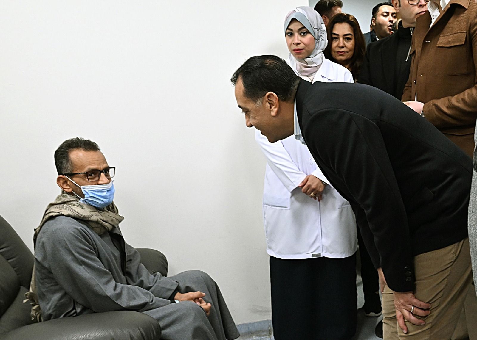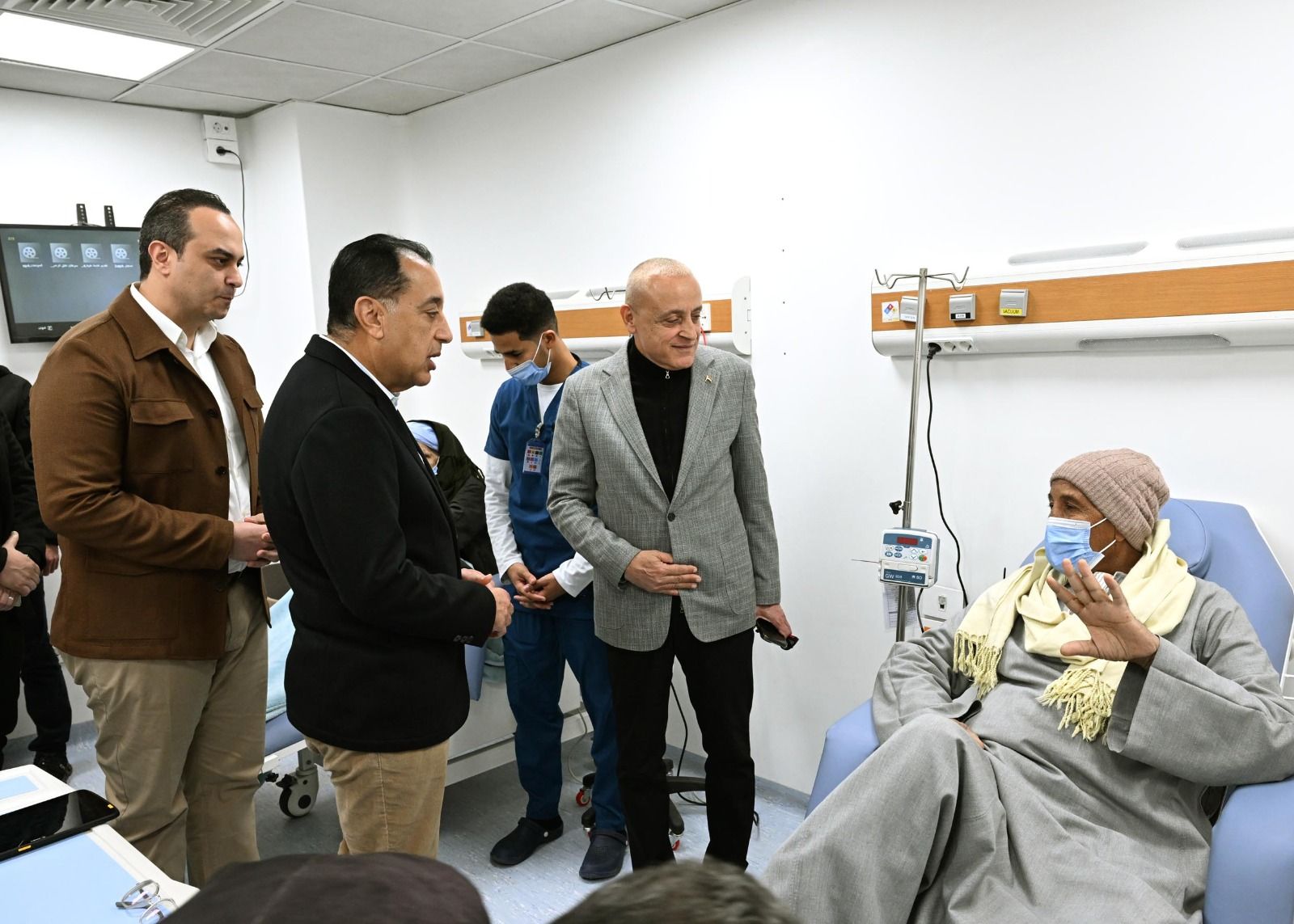 وخلال تفقد رئيس الوزراء لقسم علاج الأورام، أجرى الدكتور مصطفى مدبولي حوارا وديا مع عدد من المرضى الذين يتم تجهيزهم لإجراء جلسة علاج بالكيماوي، واستفسر منهم على مستوى الخدمة المقدمة لهم في هذا القسم، وعن الفترة التي يتلقون فيها جلسات بهذا العلاج؛ حيث أوضح أحد المرضى من كبار السن أنه يتلقى هذا العلاج منذ ما يقرب من العام، وأن مستوى الرعاية الصحية والعلاجية عالية للغاية وملموسة قائلا: "الخدمة الطبية مية مية.. وكل الأقسام اللي اتعالجت فيها عشرة على عشرة".