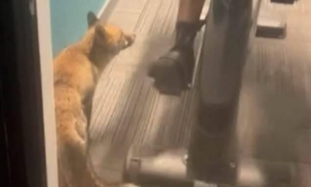 وثق أحد المارة ثعلباً داخل صالة ألعاب رياضية في جنوب لندن، حيث شوهد جاثماً بجوار رجل يستخدم دراجة في الصالة الواقعة بمنطقة كاتفورد وكأنه ينتظر دوره لممارسة بعض التمارين.