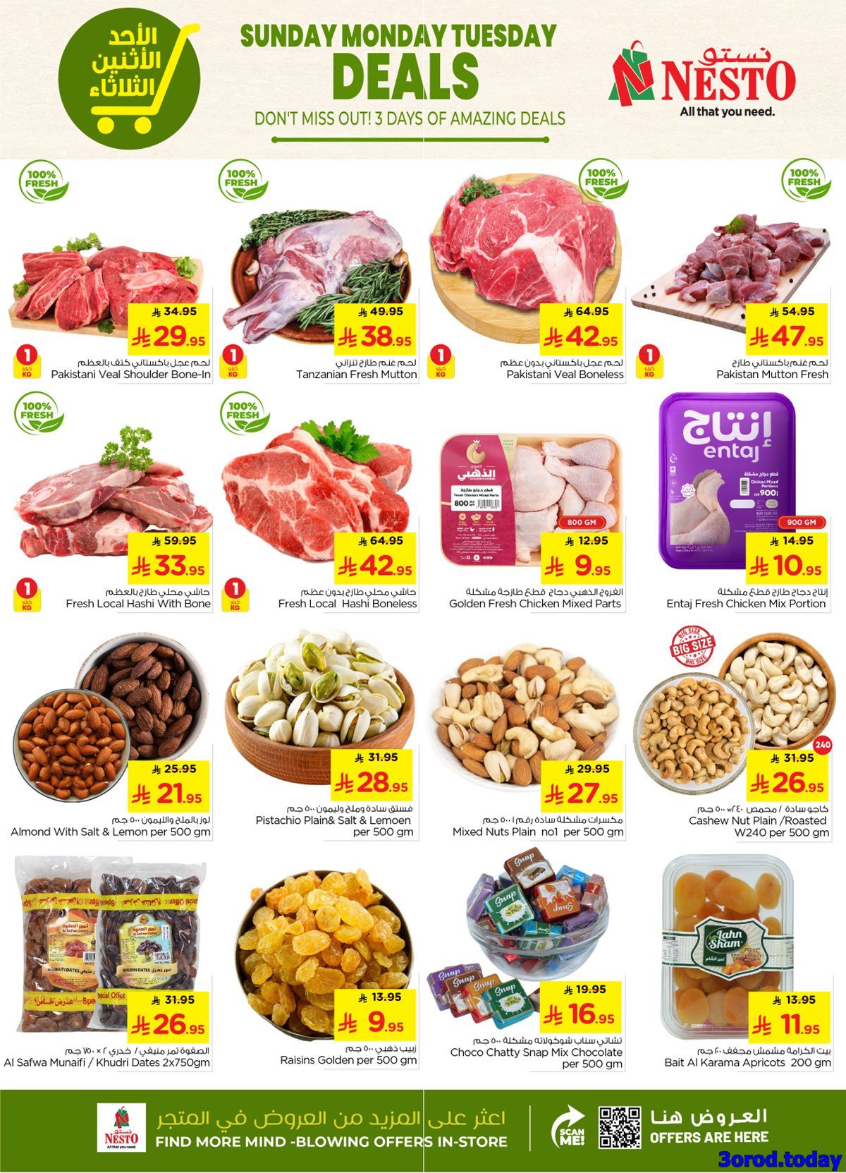 تحتوي عروض نستو القصيم علي : تفاح – خس – كيوي – ليمون – فلفل أخضر – طماطم – خس – بلوبيري – بروكولي – سمك حمرا – سمك همس – لحم بقر مفروم – لحم غنم طازج – لحم بقري باكستاني – لحم بقري مفروم – دجاج ذهبي – دجاج انتا – عدس أحمر – حمص – لوز – كاجو – فاصوليا – تمر – كولجيت – توأم – شوي شيلد – كاو