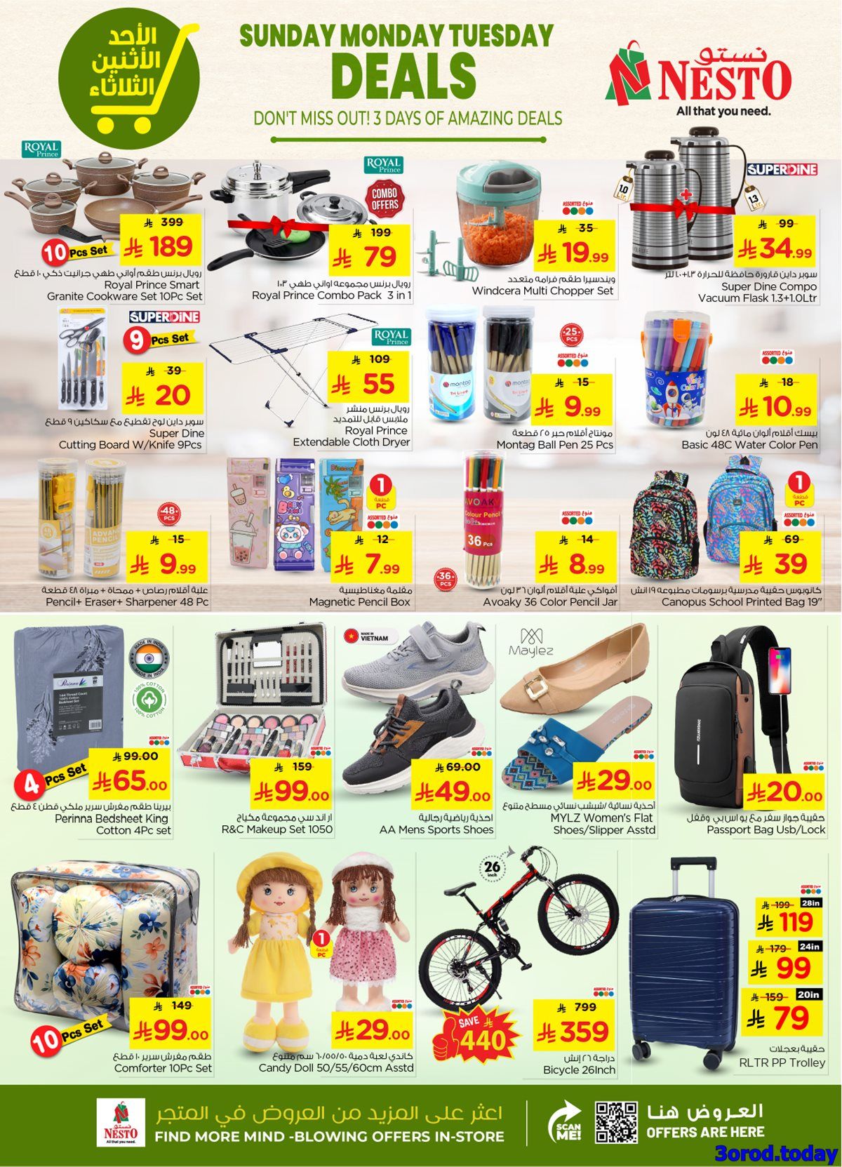 عروض نستو القصيم الاحد 4-1-2026 الموافق 15 رجب 1447هـ و تحتوي علي مجموعة من المنتجات الغذائية و الاستهلاكية منها منتجات البقالة و الخضروات و الفواكه الطازجة و تشمل ايضا مجموعة من الالكترونيات منها اجهزة المطبخ العملية و ادوات تحضير الطعام و باقل الاسعار المناسبة للجميع .