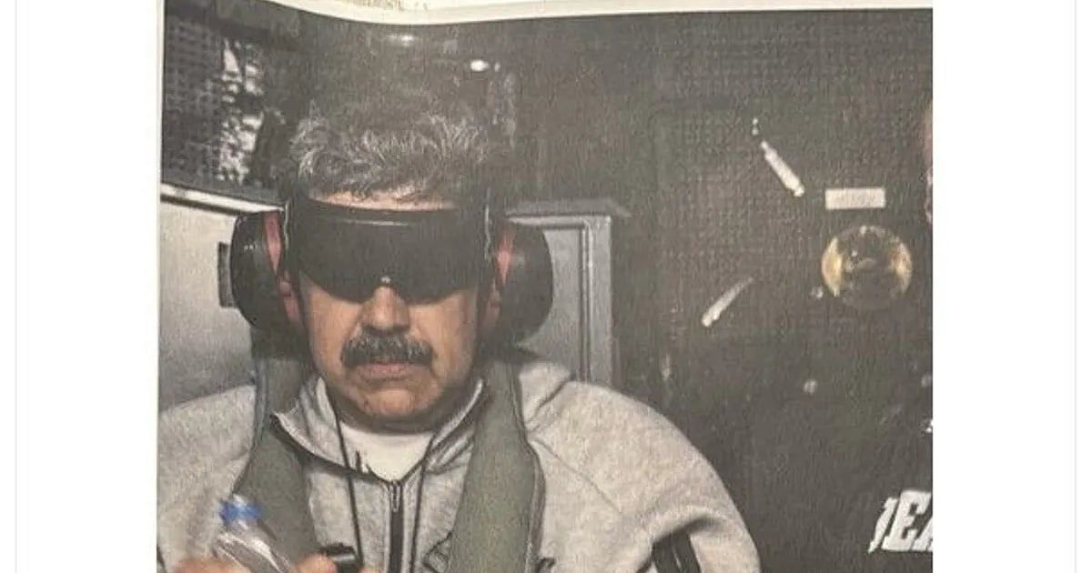وأظهرت الصورة مادورو مرتديًا ملابس رياضية، معصوب العينين ومكبّل اليدين، وهو يحمل قنينة مياه صغيرة، في مشهد أثار تفاعلًا واسعًا وجدلاً سياسيًا وإعلاميًا.