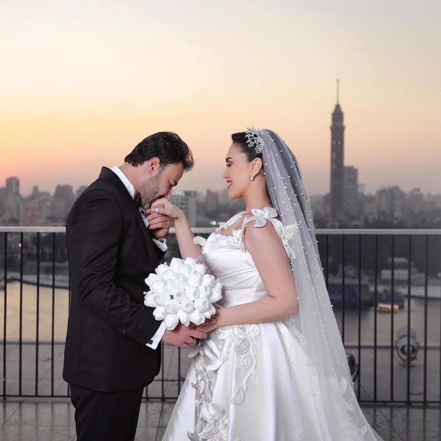 مي فاروق ومحمد العمروسي من حفل زفافهما