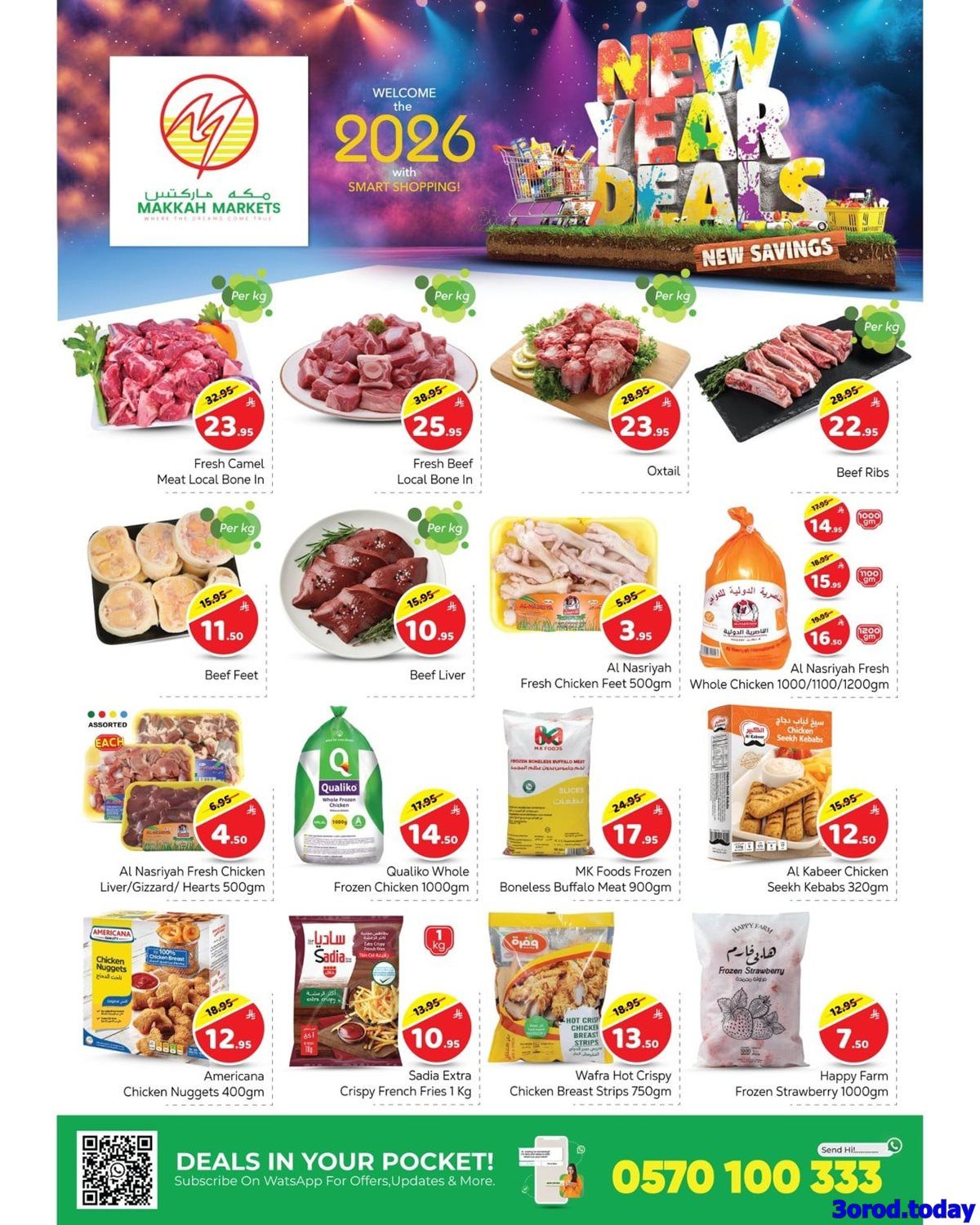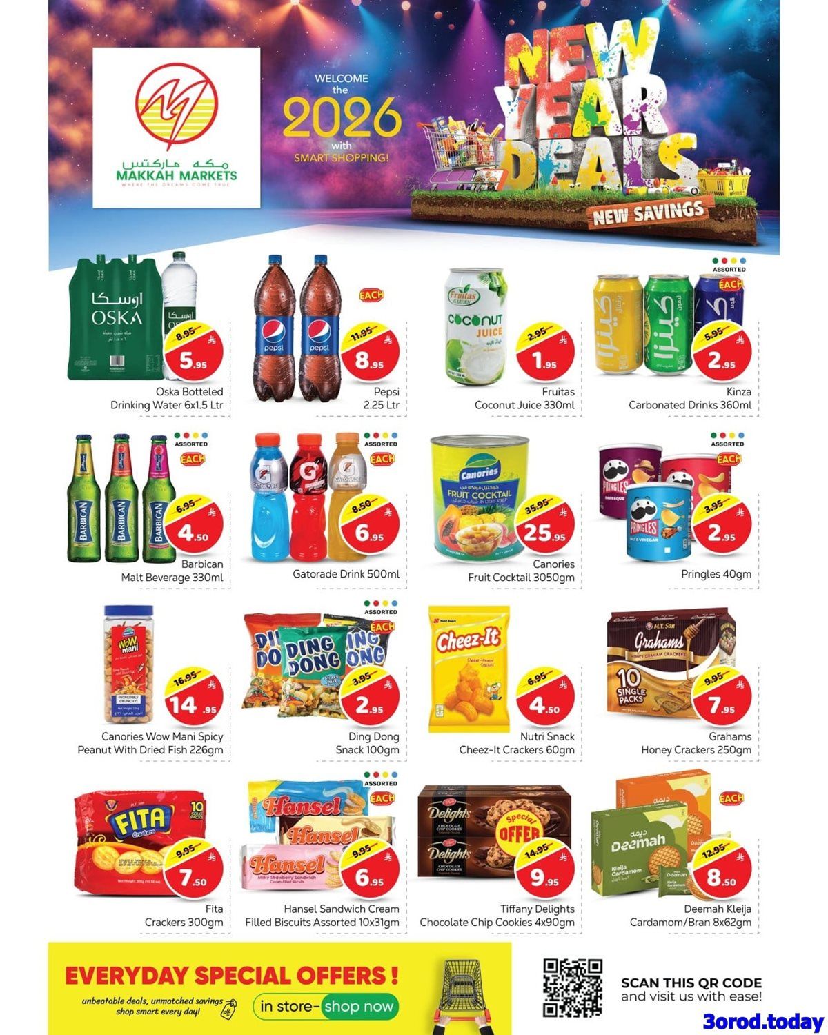 مكة ماركت الاسبوعية و التي تستمر حتي السبت 10-1-2026 الموافق 21 رجب 1447هـ وبمناسبة العام الجديد بتقدم تشكيلة من منتجات متنوعة منها غذائية و منها ادوات المطبخ و مستلزمات تحضير الطعام و في عروض حصرية تتممتع بخصومات مميزة في الاسعار ابقوا معنا ولا تفوتو الفرصة