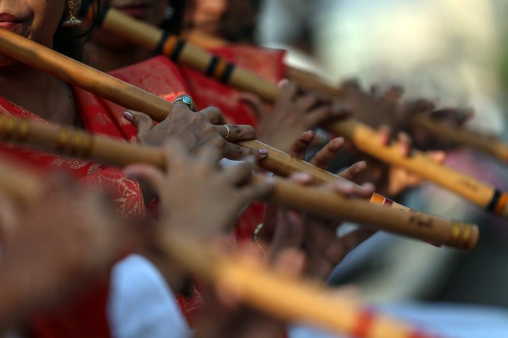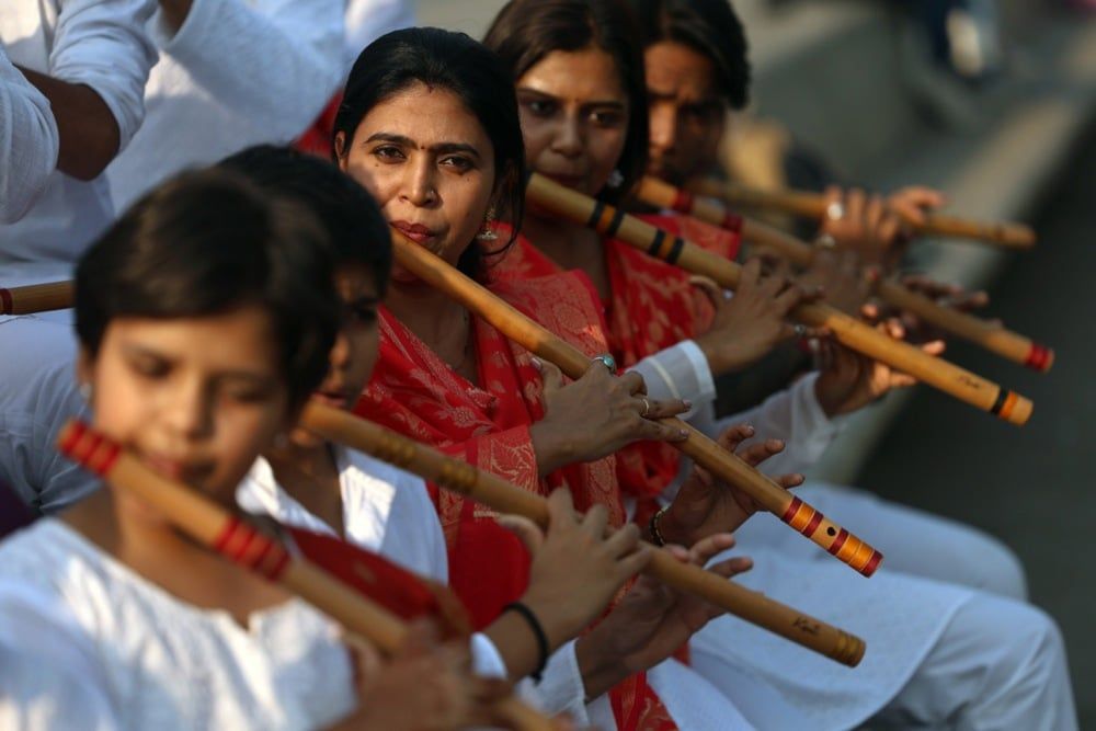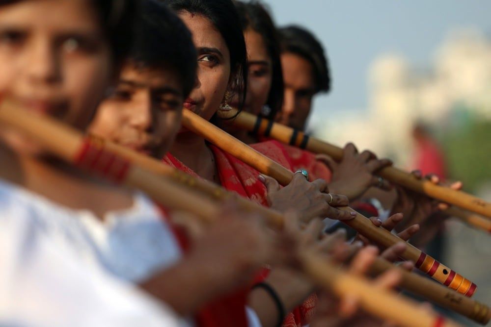 تحافظ الهند على الموروث الموسيقى الشعبى، للعزف على آلة الفلوت، وذلك حسبما نشرت وكالة الأنباء الأوروبية صورا لعازفو الفلوت الهنود وهم يتدربون في منطقة مارين درايف في مومباي استعداداً لعزف سيمفونية الفلوت