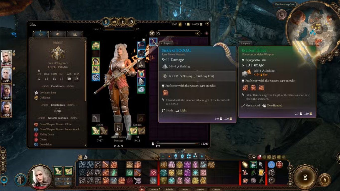 يؤدي اختيار التحول إلى مختار BOOOAL في Baldur’s Gate 3 إلى الحصول على مكافأة نادرة تحمل طابعا سرديا وقتاليا في الوقت نفسه حيث يتم منح اللاعب سلاحا فريدا يعرف باسم Sickle Of Boooal وهو منجل يعكس بشكل مباشر طبيعة الكيان الزائف والطقوس الدموية المرتبطة به داخل The Festering Cove.