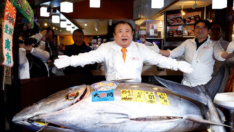 دفع مالك سلسلة مطاعم سوشي مبلغاً قياسياً قدره 3.27 ملايين دولار (510.3 ملايين ين) مقابل سمكة تونة زرقاء عملاقة، طُرحت في مزاد رأس السنة المرموق، الذي نظم، أمس، بسوق السمك الرئيسة في طوكيو.