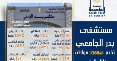 أعلنت جامعة العاصمة (حلوان سابقًا)، برئاسة الدكتور السيد قنديل رئيس الجامعة، عن حصاد إنجازات مستشفى بدر الجامعي خلال عام 2025، والذى مثّل عامًا استثنائيًا في مسيرة القطاع الطبي بالجامعة، حيث استقبل المستشفى 636,846 حالة، في تأكيد واضح على دوره الحيوي كأحد الأعمدة الأساسية لتقديم الخدمة الطبية المتكاملة للأهالي ، وذلك تحت رعاية الدكتور السيد قنديل رئيس الجامعة، وإشراف الدكتور ة رشا رفاعي عميد كلية الطب ورئيس مجلس المستشفيات الجامعية، والدكتور وائل عمر المدير التنفيذي للمستشفيات الجامعية.