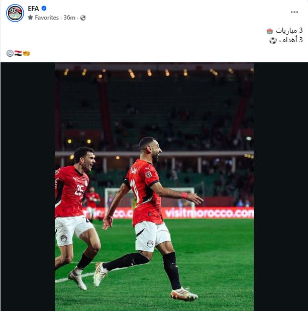 ونشرت الصفحة صورة لمحمد صلاح من مباراة بنين أمس فى دور الـ16، وعلقت :" 3 أهداف × 3 مباريات "