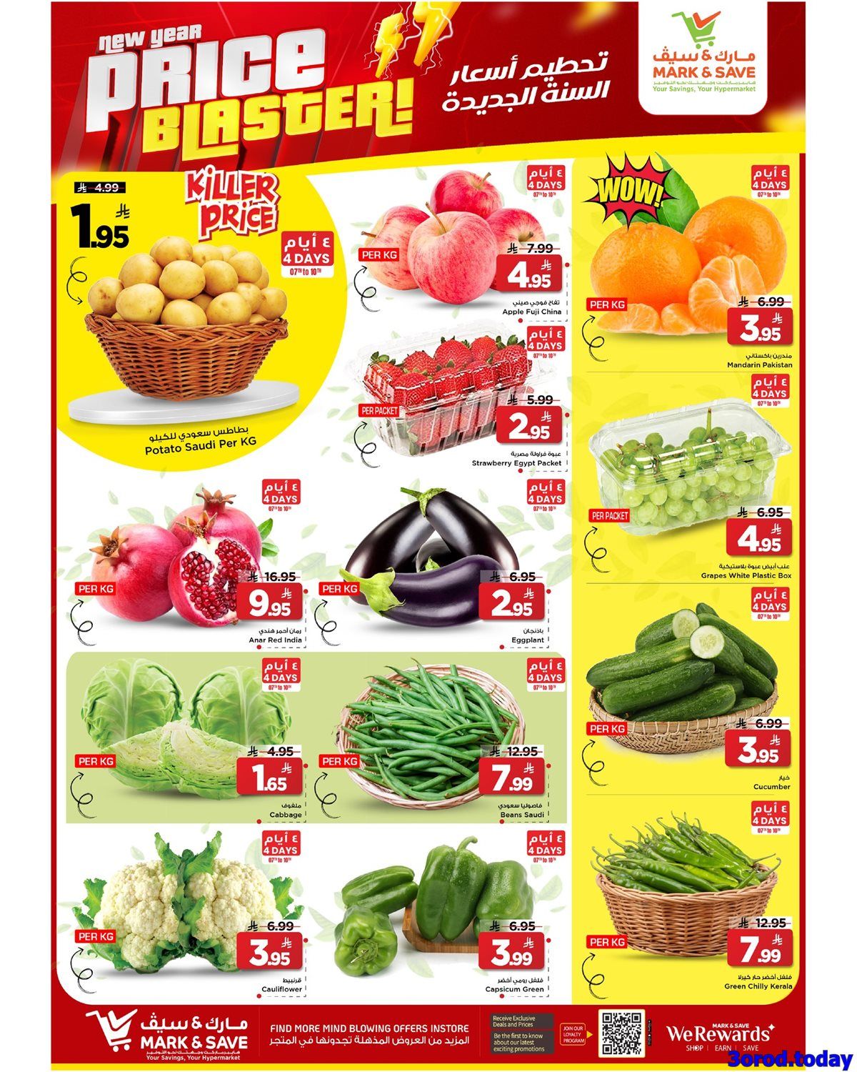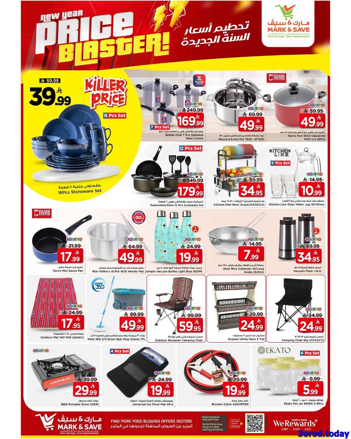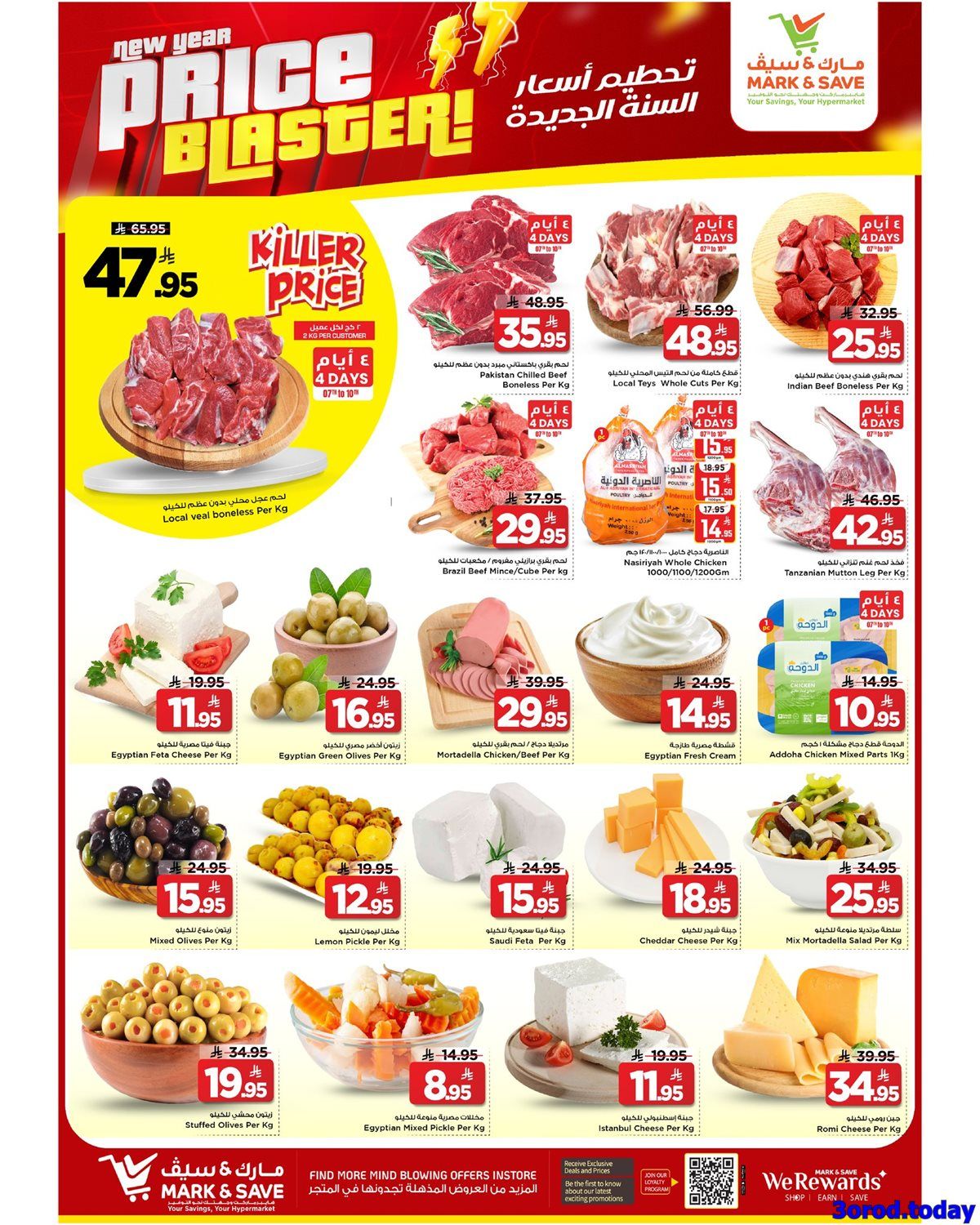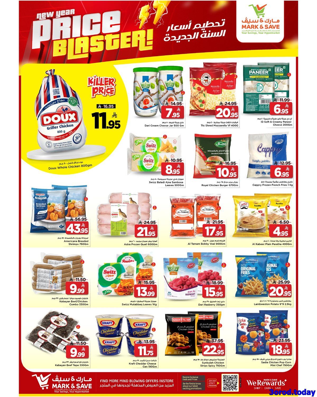 عروض مارك اند سيف الأحساء الأربعاء 7/1/2026 الموافق 18 رجب 1447هـ تضم فرن كهربائي ومقلاة هوائية وصانعة كريب وصانعة ساندويتش وخلاط عصائر ثم تشمل المنتجات الغذائية و تحتوي على الملفوف والبنجر والبطاطس الصغيرة والتفاح والعنب والحليب والجبن الشيدر والزبدة غير المملحة والمعكرونة و باسعار مميزة