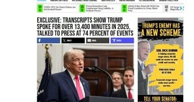 تحدث الرئيس دونالد ترامب بأكثر من 2.57 مليون كلمة خلال فعاليات جرى تفريغ تصريحاته فيها عام 2025، وتفاعل مع الصحافة في 74% من تلك الفعاليات، وفقًا لبيانات راجعها موقع "بريتبارت نيوز".