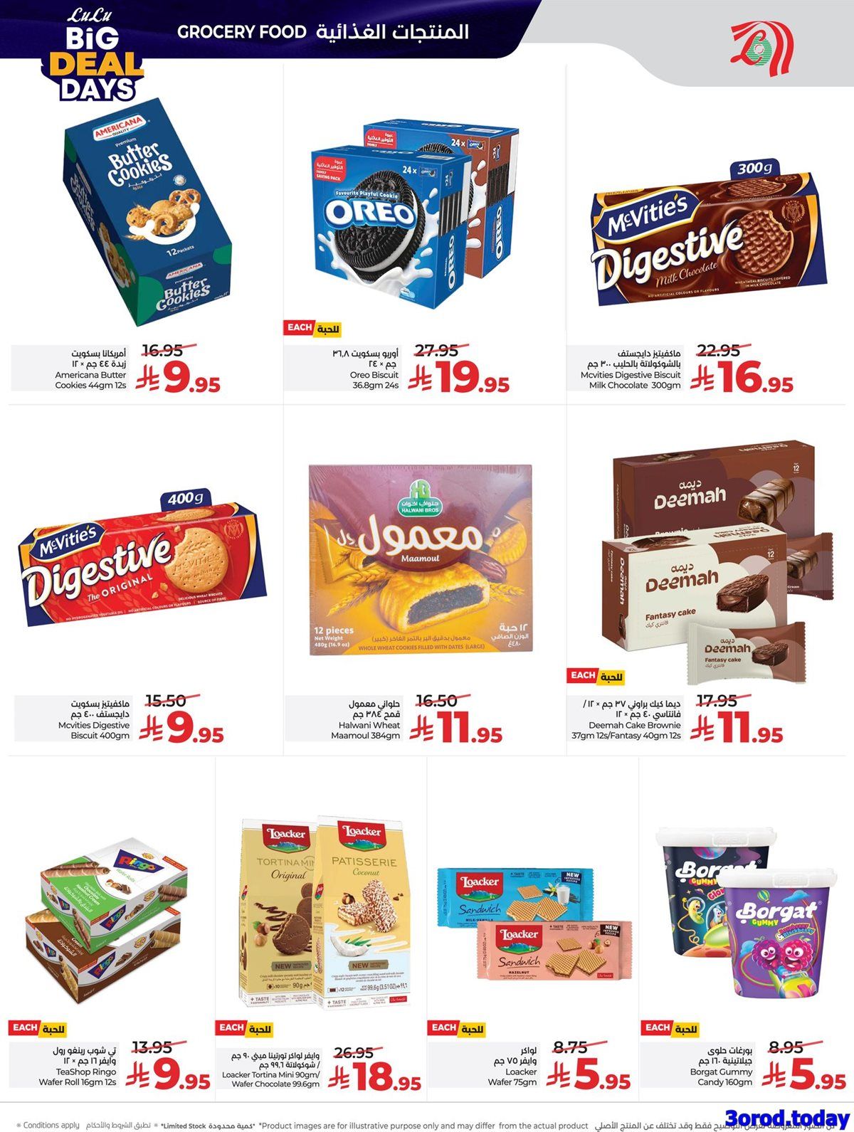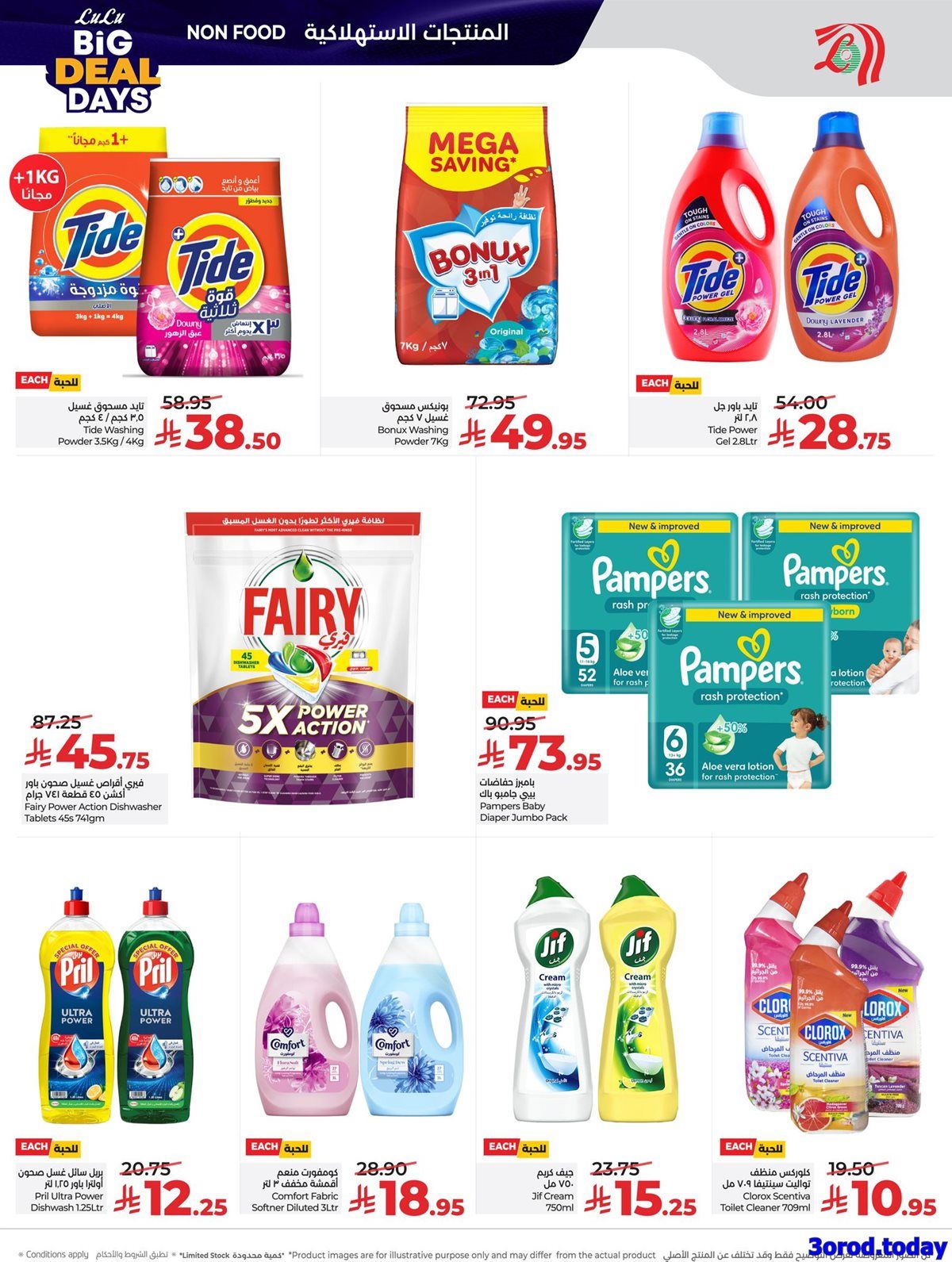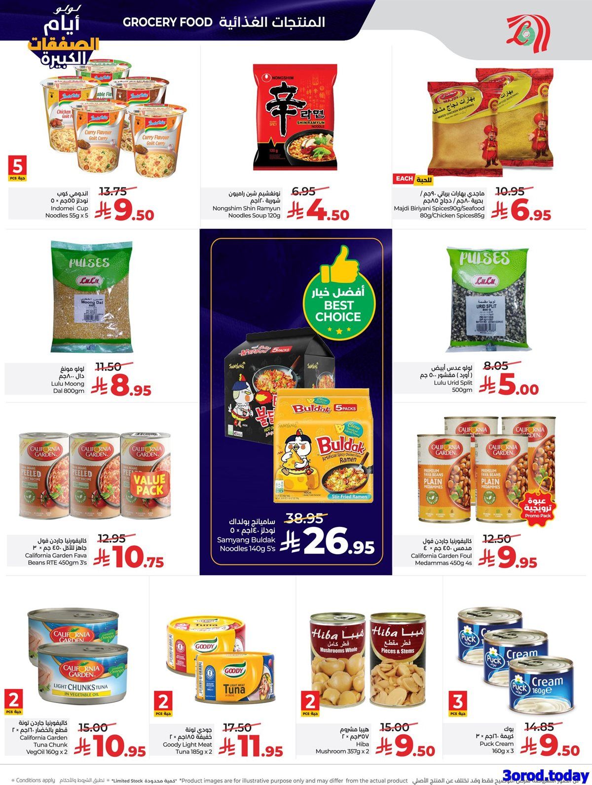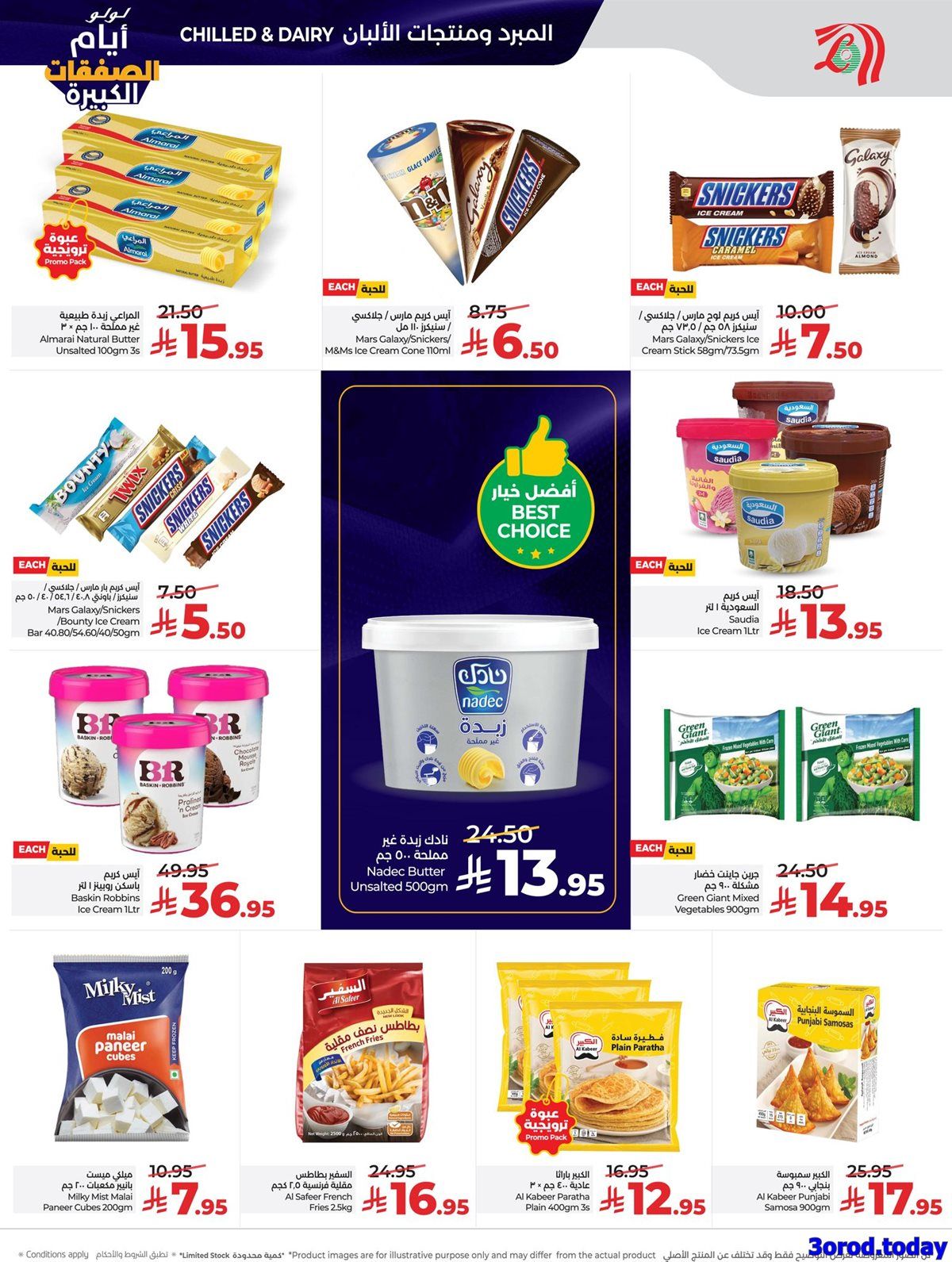 تحتوي عروض لولو الرياض علي :حليب بروتين يوبرو – عصير نادك – كيك جالكسي – لبن اكتيفيا – جبنة شرائح بريزيدن – جبنة حلومي بوك – لبن زبادي ندى – حليب طويل الأجل – جبنة مثلثات البقرة الضاحكة – مياه معدنية – سكر ناعم – شاي ليبتون – قهوة نسكافيه – دقيق فوم – ملح طعام – بيض طازج – خضار مشكل مجمد – برجر دجاج – بطاطس مقلية مجمدة.