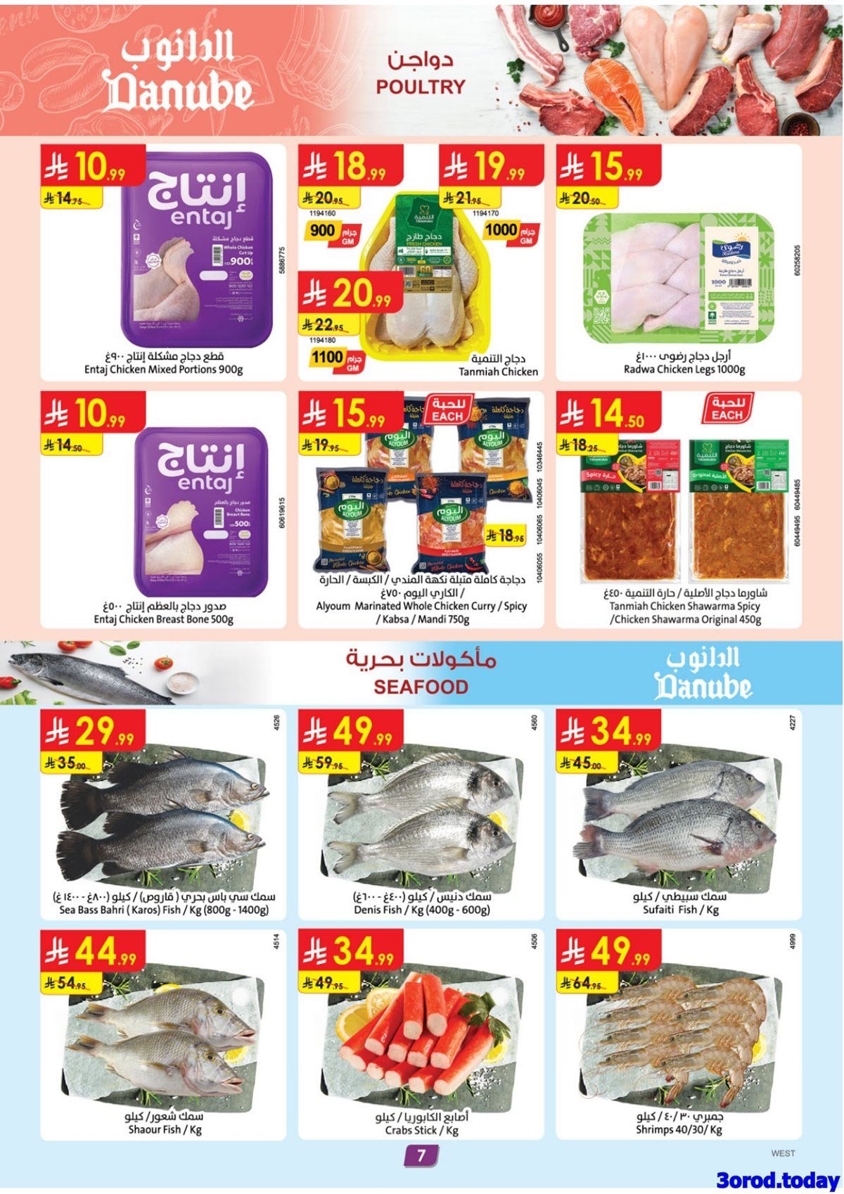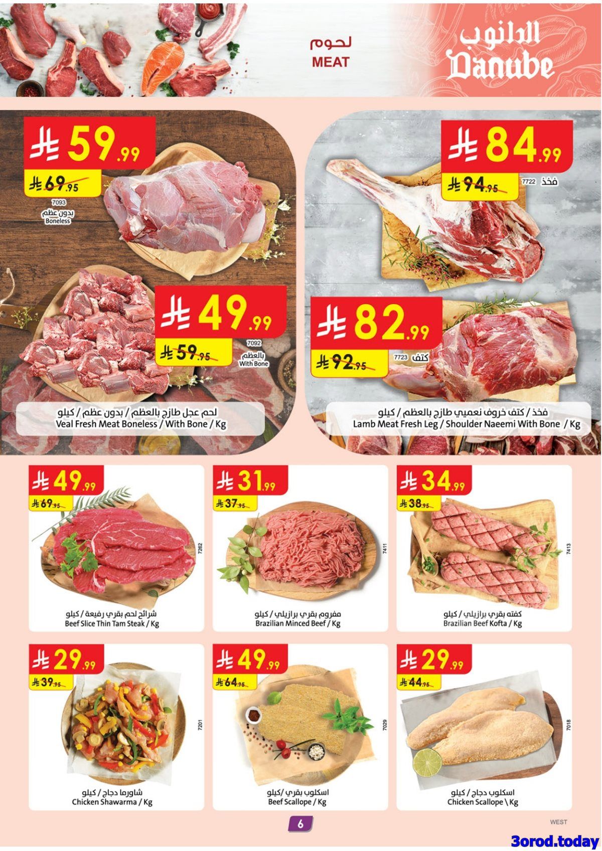 تحتوي عروض الدانوب جدة هذا الاسبوع علي : ملوخية – خردل – مشروم – كورن فليكس – لبن سائل – برتقال – كلور – بخاخ ذباب – صابون حمام – كريم حلاقة – ورق زبدة – أكياس قمامة – بصل – طماطم – خيار – بروكلي – فاصوليا خضراء – أجنحة دجاج – صدور بانيه – كفتة داوود باشا – آيس كريم – نوتيلا – توست – زيت حار